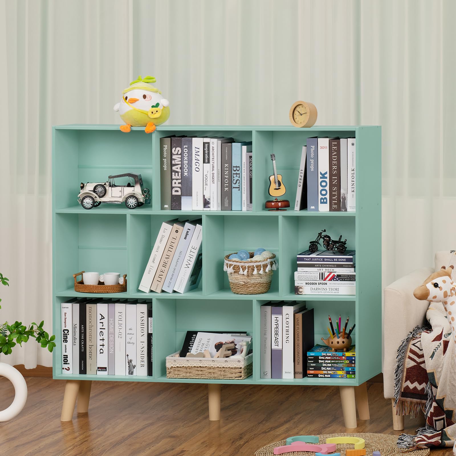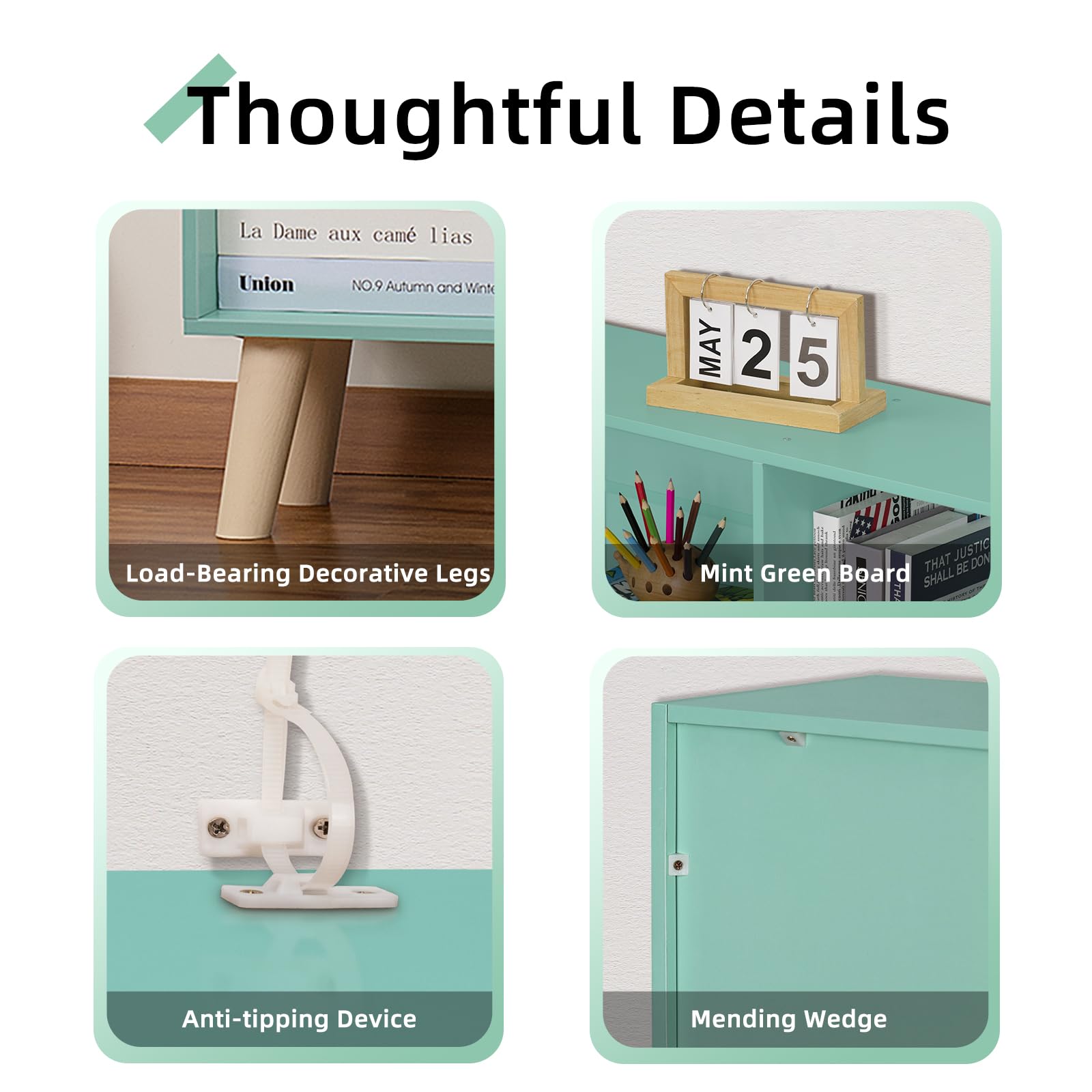 【More Applications】The simple upright and open design of the wide book case is perfect for saving space in your house, which can provide versatile storage and display options. This vintage childrens bookshelf can also be used as a storage shelf and display shelf.You can use your imagination to develop even more uses for your mint green bookshelf, displaying beloved items as works of art.