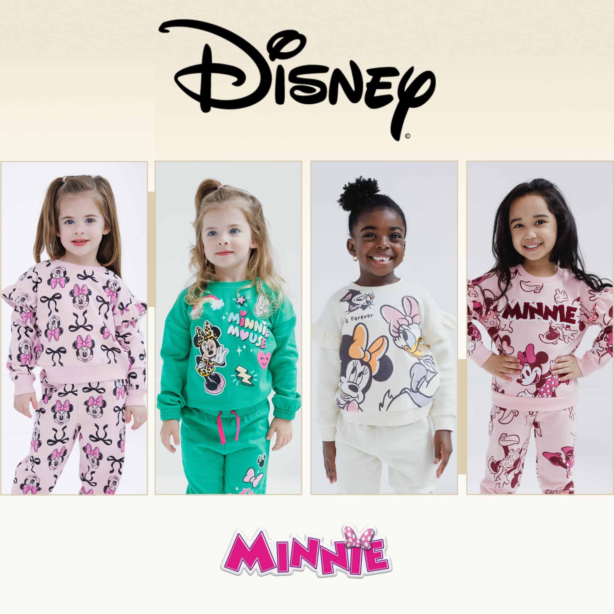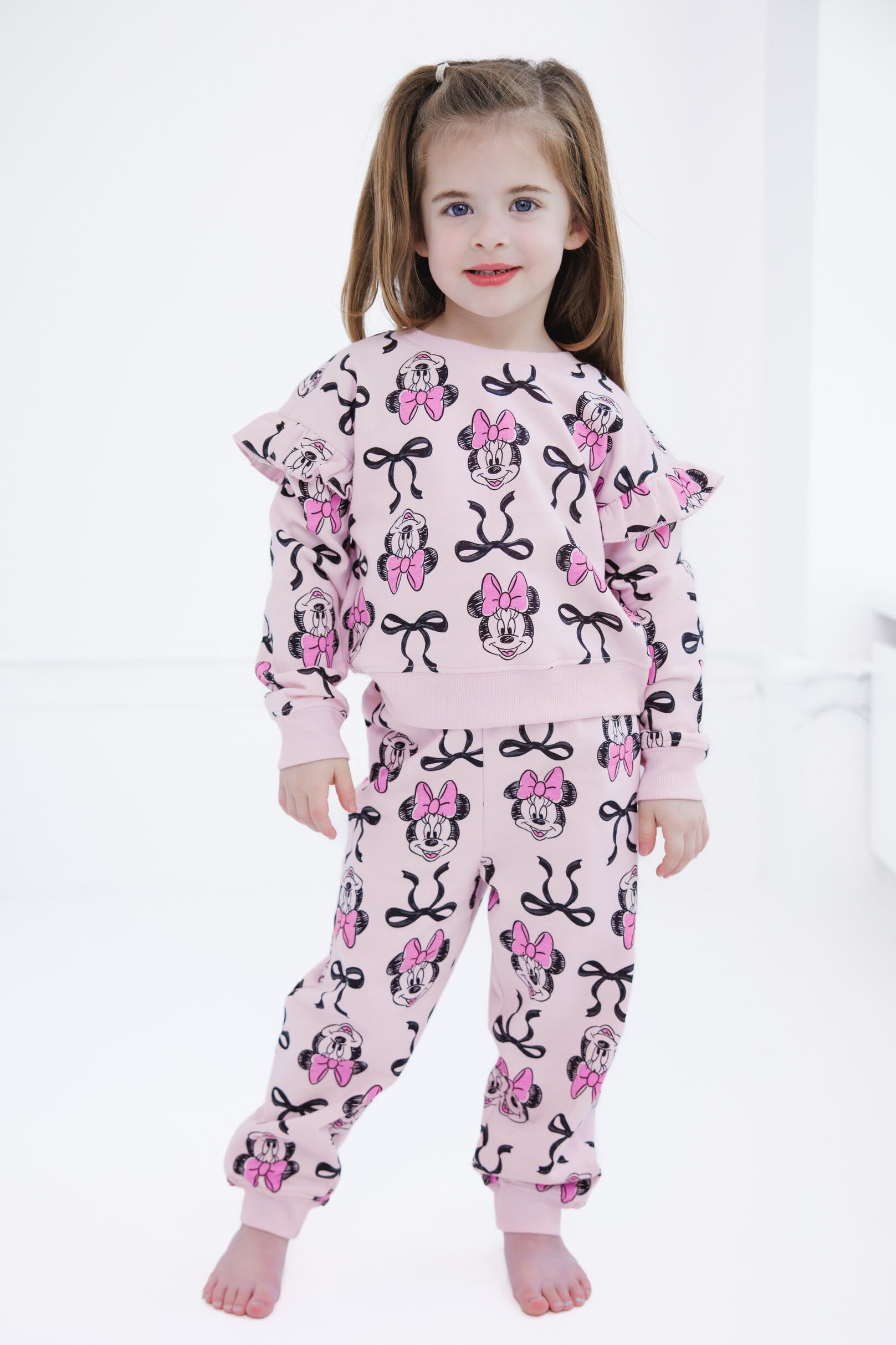 Officially licensed Disney Minnie Mouse little girls long sleeve graphic sweatshirt and pants