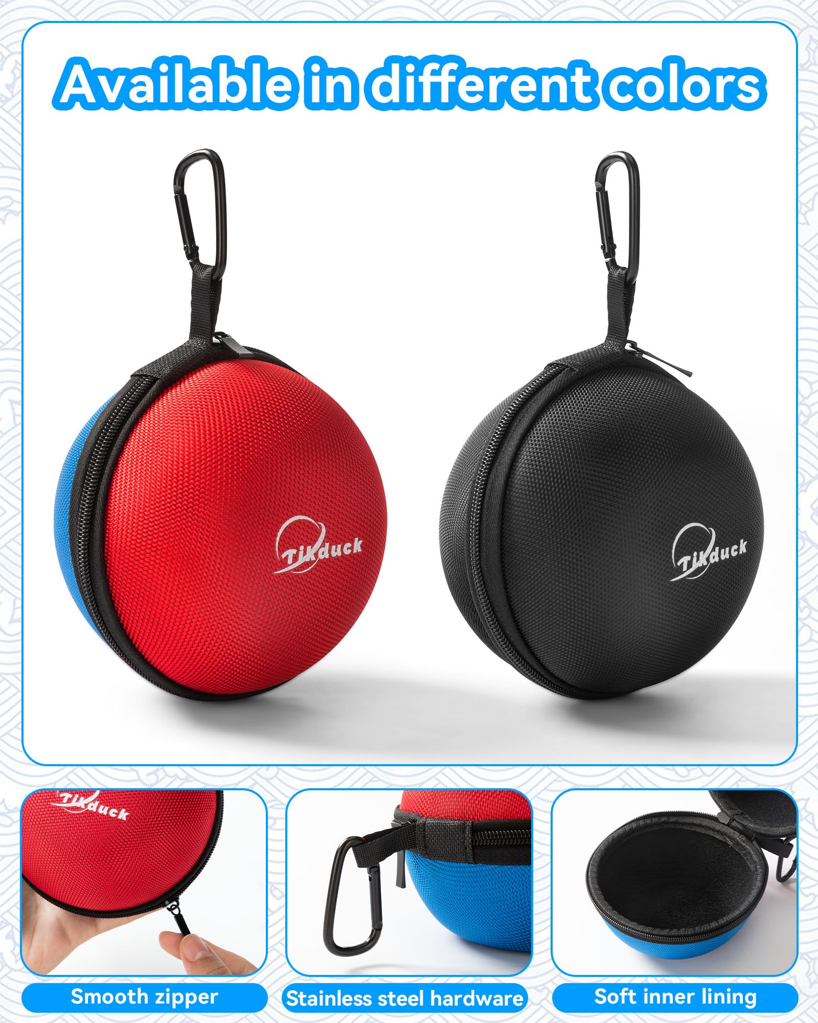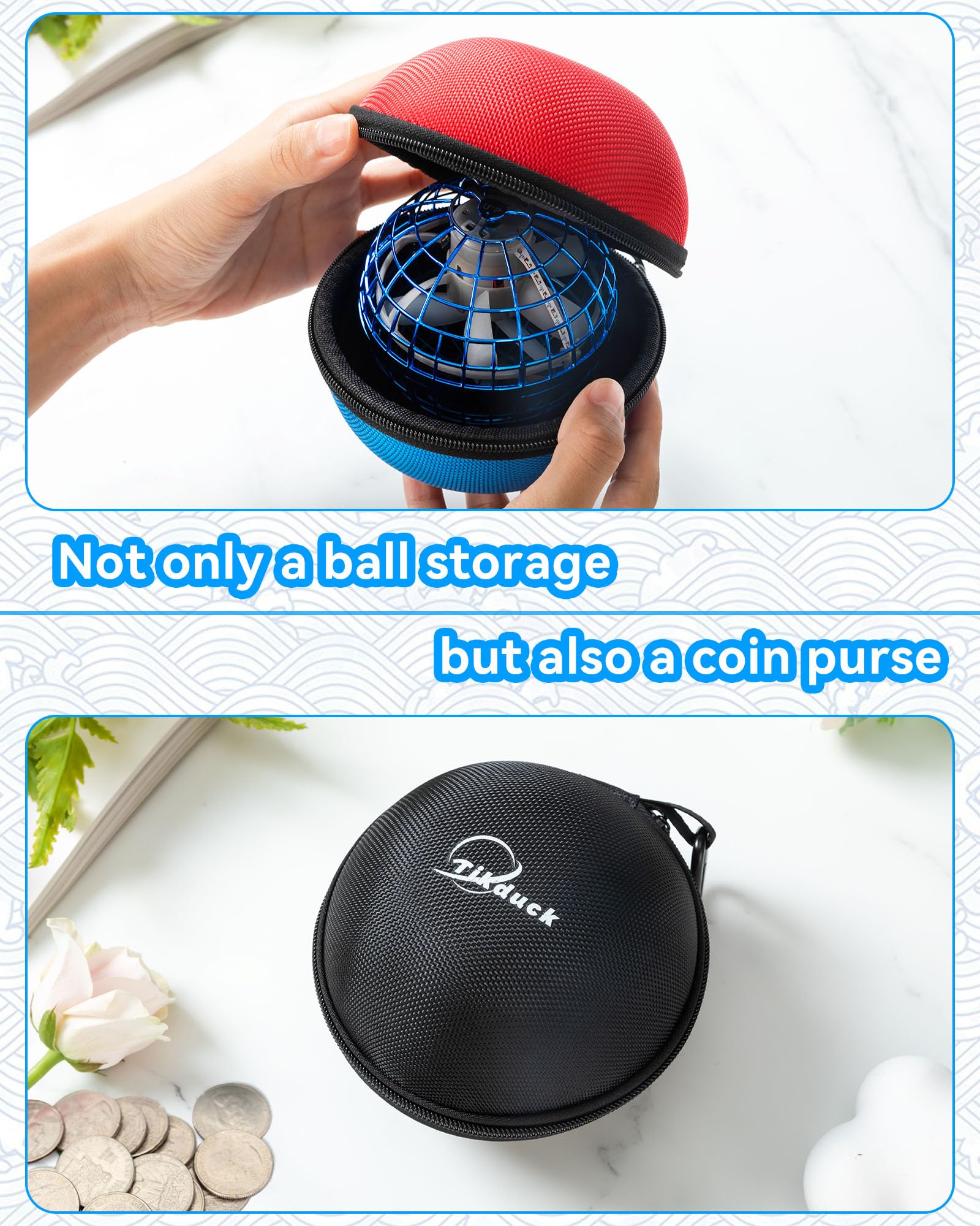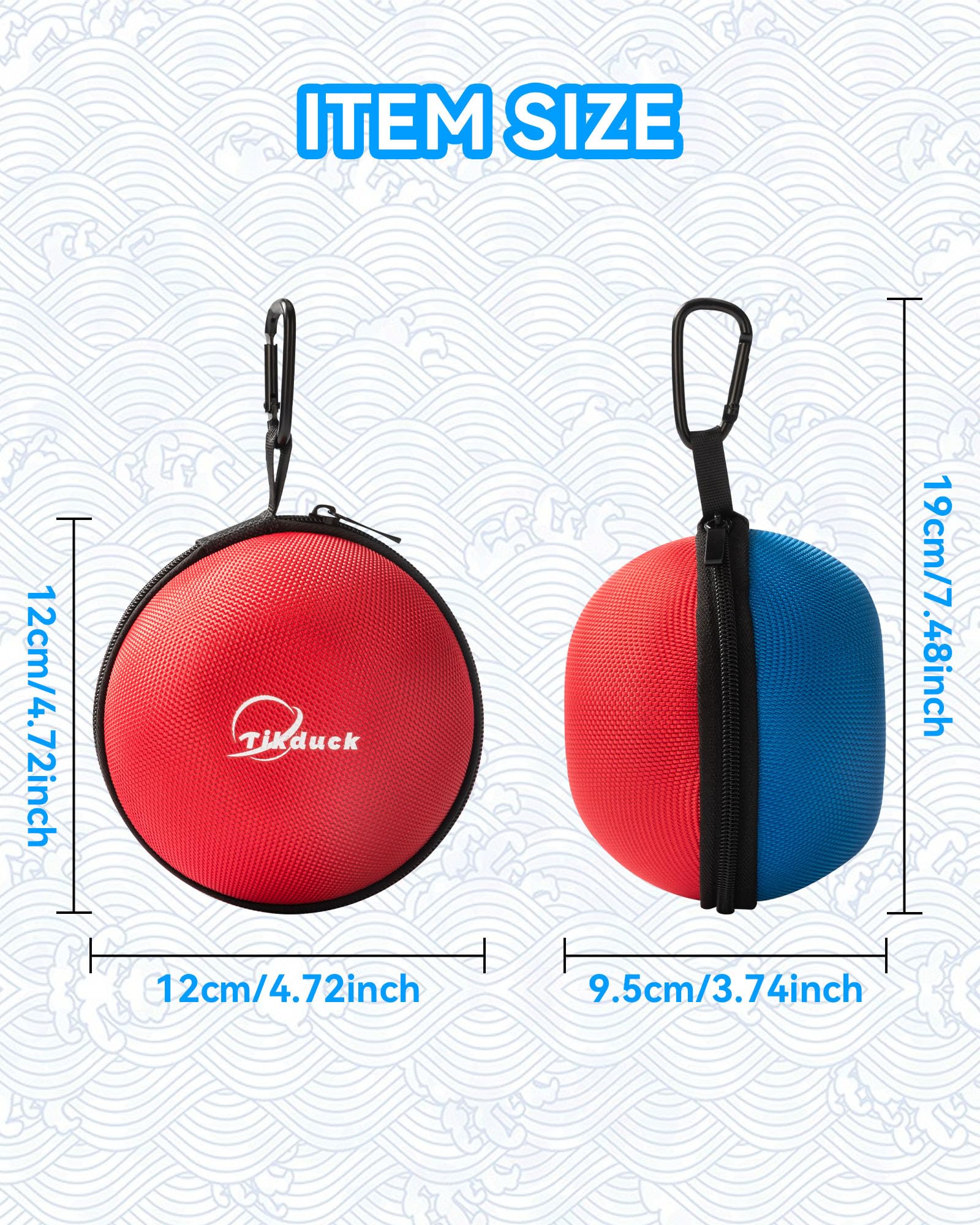 Tikduck Orb Ball Storage Tikduck orb ball storage made of EVA hard shell, soft inner liner, and high qualtiy durable zipper to offer double protection and protect your flying toys or other objects from accident drop, bumps and scratches. Equipped with the stainless-steel carabiner for easily attached to your backpacks or bags, easy to carry, convenient and useful. Flying Orb Ball Storage Case Material: Hard EVA The hard outer shell protects the contents from crushing, and squeezing. Carabiner Material: Stainless Steel Color: Black/Red Blue Orb ball Storage Size: 34.72 x 4.72 x 3.74 inches The orb ball storage case is substantial, well made, and extremely protective. The orb ball storage case provides plenty of space for flying orb ball toys, bluetooth earbuds, a wall charger, a cable, and all sorts of toys and objects.
