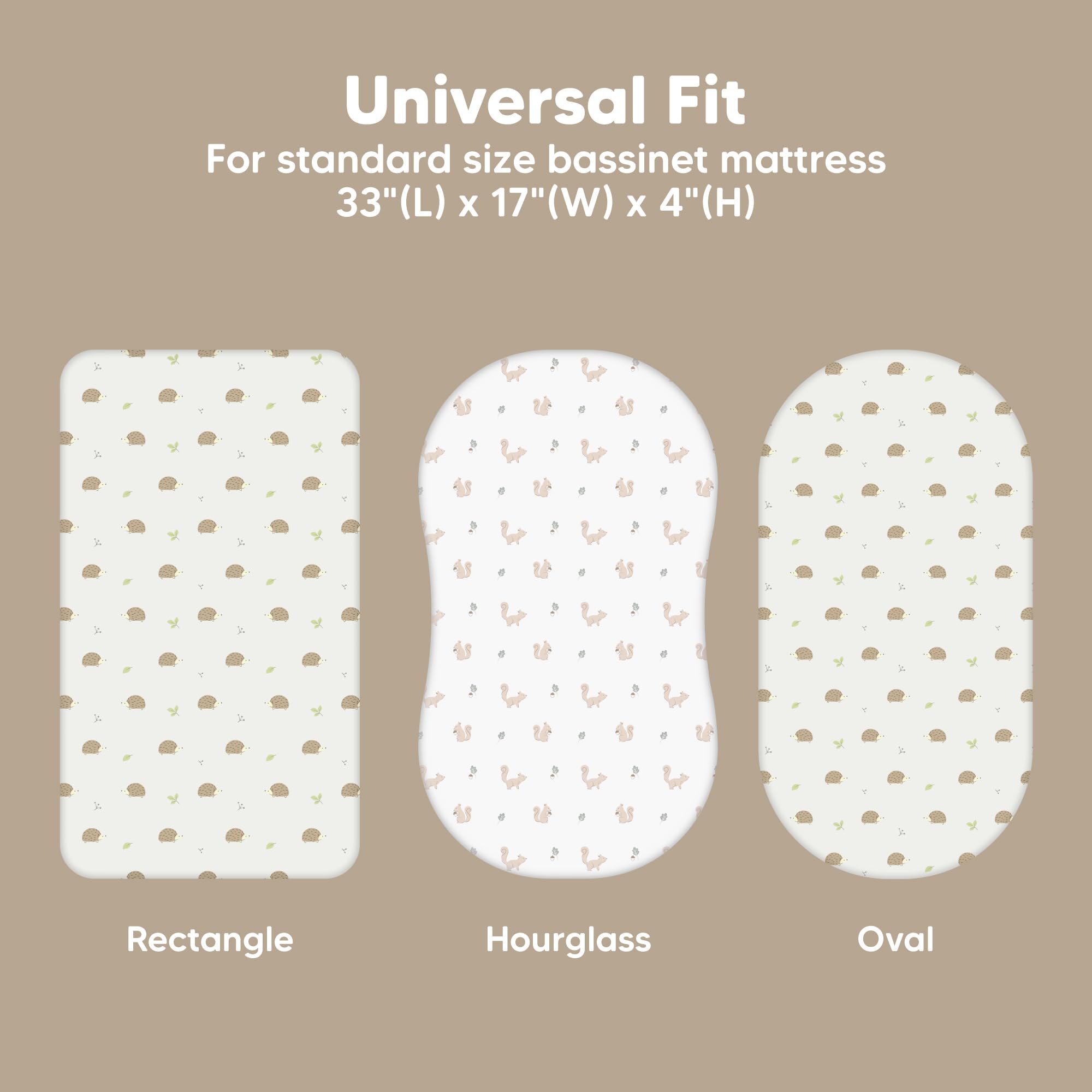 2-Pack Bassinet Fitted Sheets - KeaBabies Isla Bassinet Mattress Sheets, sized at 33" x 17" with a depth of up to 4", provide a universal fit for all bassinet mattress pad types. They can be used as hourglass, oval, rectangle bassinet sheets.