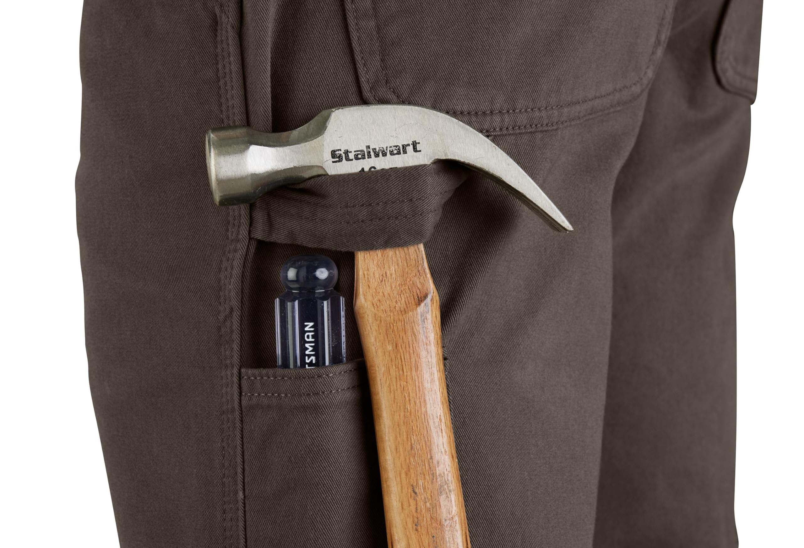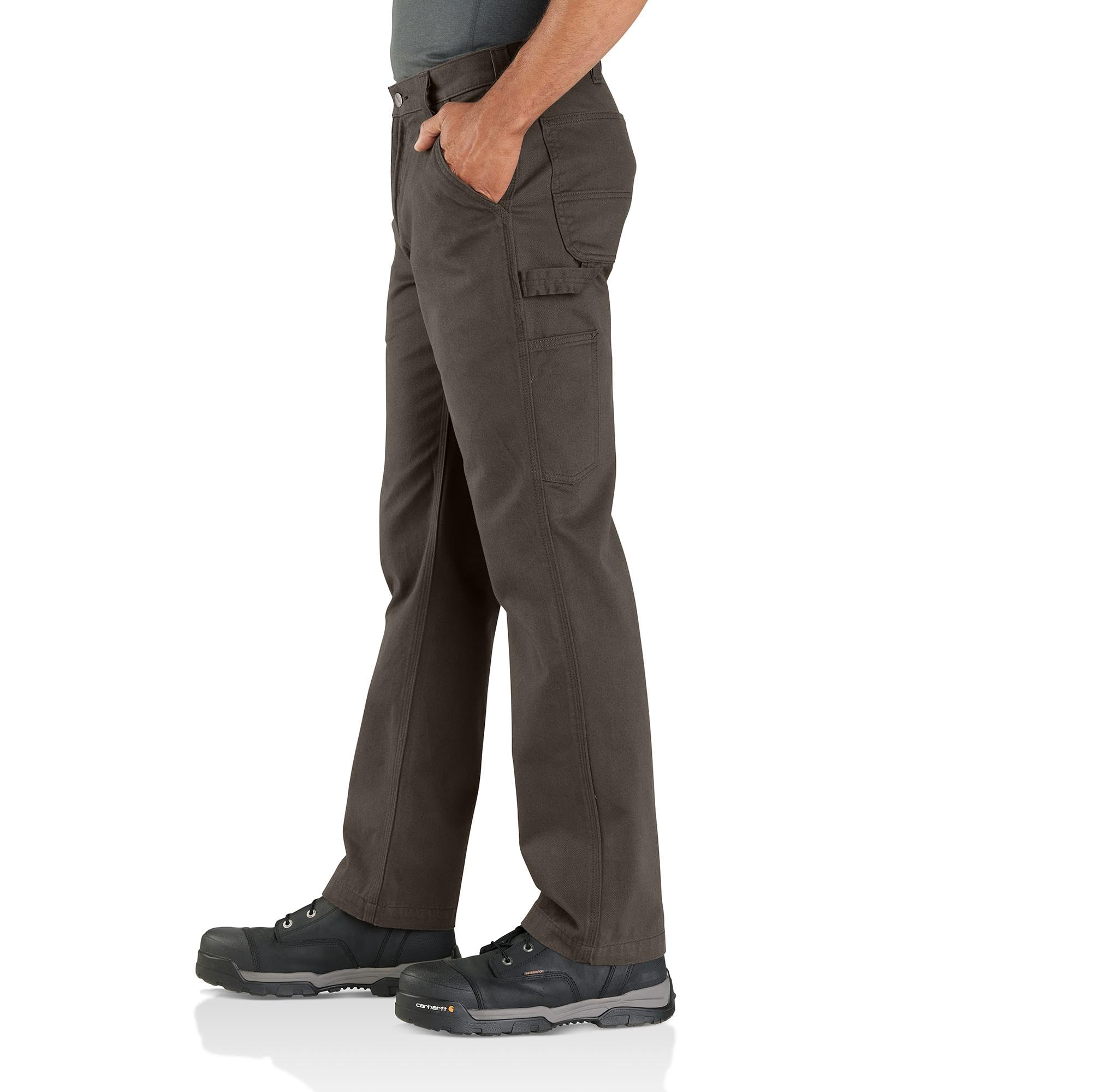 Description Carhartt's washed twill dungaree combines all-day comfort with long-lasting toughness. constructed of 9.25-ounce, 100% cotton ring-spun washed twill with a relaxed-fitting seat and thighs, it sits slightly below the natural waist. well outfitted, it includes multiple tool and utility pockets, a left-leg hammer loop, and two reinforced back pockets. the leg openings are sized to fit over boots.