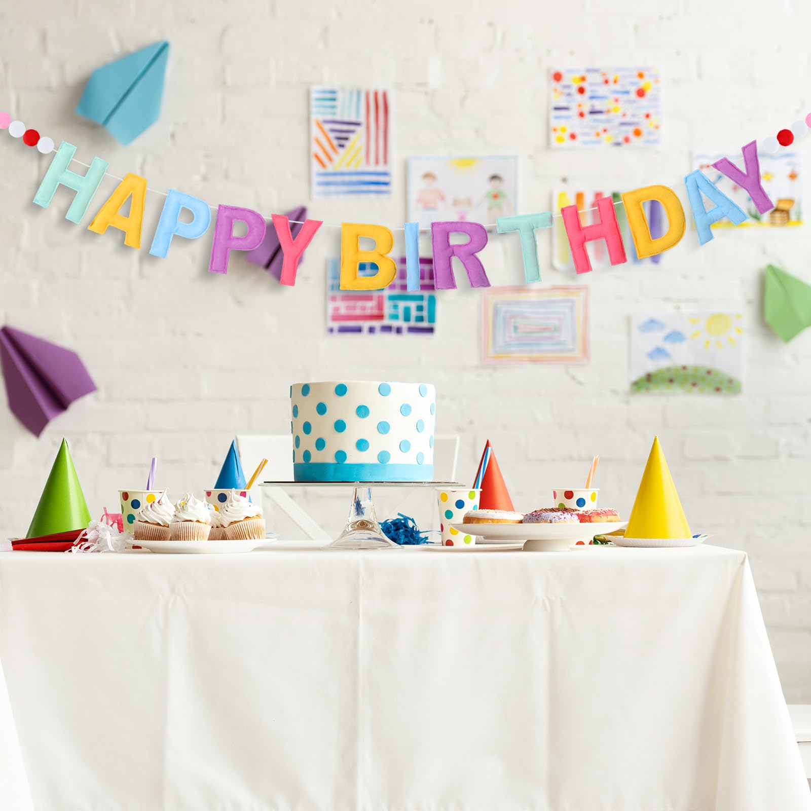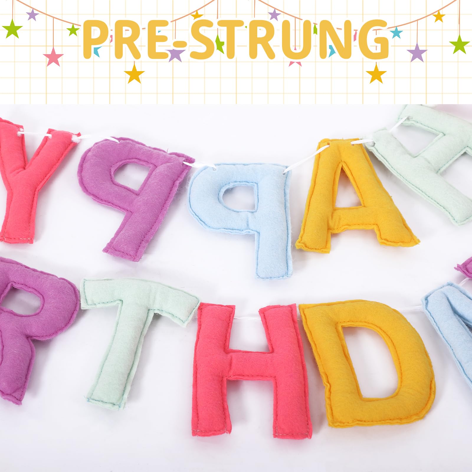 Multi Purpose Birthday Decor: with its lightweight design, our felt happy birthday banner garland provides a easy installation for both indoor and outdoor celebrations; Be it on mantels, railings, windows, dessert tables, or even as a photo background, our banner infuses an energetic and vibrant atmosphere