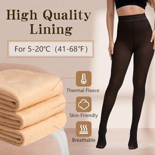 【Fake Translucent pantyhose】The warm tights for women have a black transparent layer on the outer layer and a soft and skin friendly fleece lining on the inner layer, giving a illusive translucency. The fleece lined sheer tights can easily match with any winter clothes, shape the perfect body curve while keeping warm, and is a must-have item in women's wardrobes