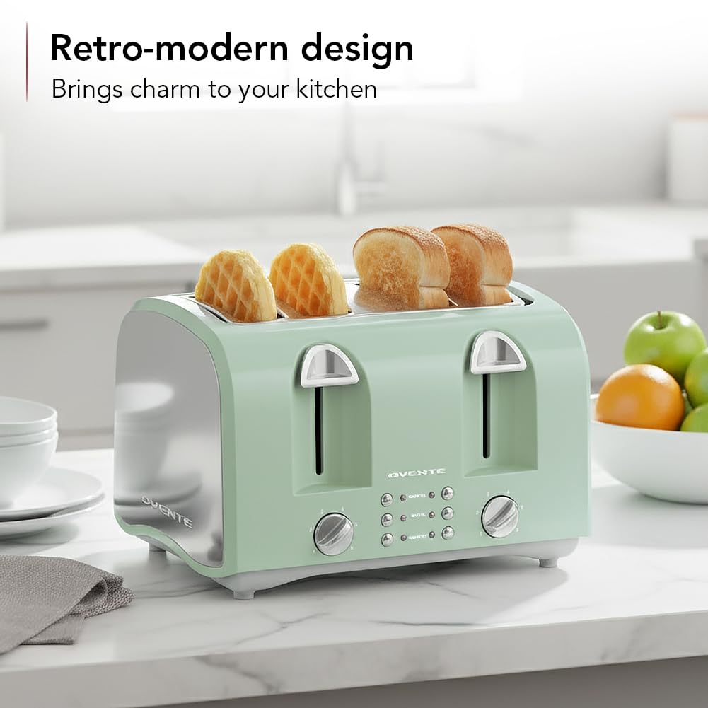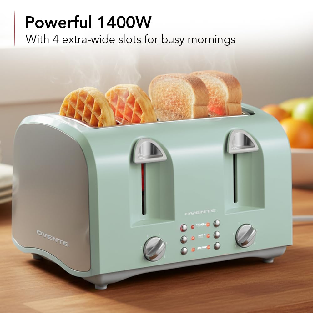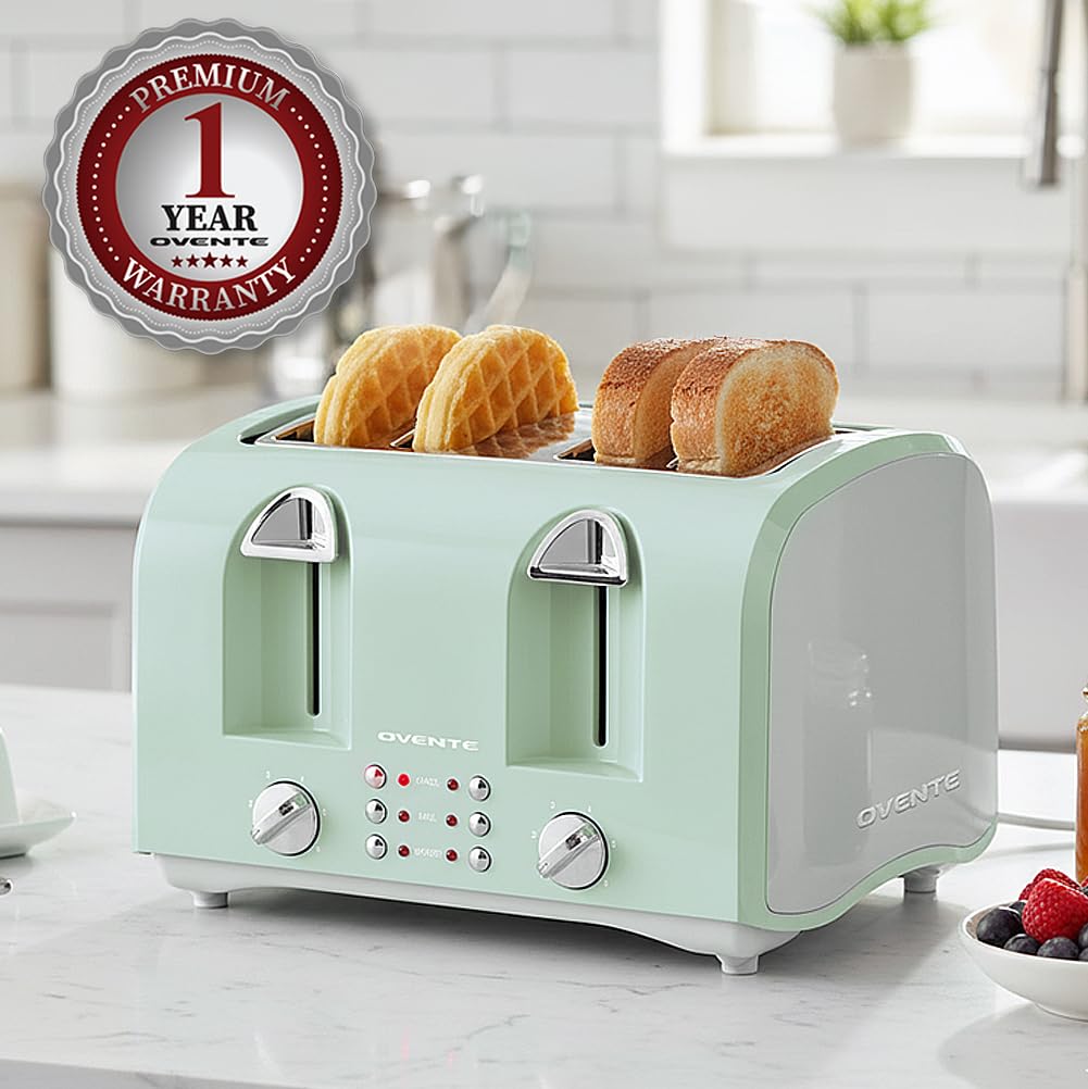 Introducing OVENTE’s 4-Slice Toaster TS4410LBL – A must-have kitchen essential to elevate your breakfast experience! Designed for both style and efficiency, this toaster combines a sleek, modern look with powerful functionality. It features four wide slots, perfect for everything from thick bagels to artisanal loaves of bread. With dual independent controls, you can customize the browning level for each pair of slots, ensuring consistently even toasting every time. The adjustable 6-shade browning settings give you complete control, allowing you to achieve your desired level of crispiness. Equipped with a pop-up lever and high-lift feature, retrieving even the smallest slices or delicate pastries is effortless and safe, without the need for utensils. Versatile functions like defrost and reheat make this toaster perfect for any meal or snack. Plus, with the simple press of the cancel button, you can stop the toasting cycle at any time. Upgrade your mornings with the OVENTE 4-Slice Toaster TS4410LBL – the ultimate blend of convenience, style, and perfectly toasted bread every time!