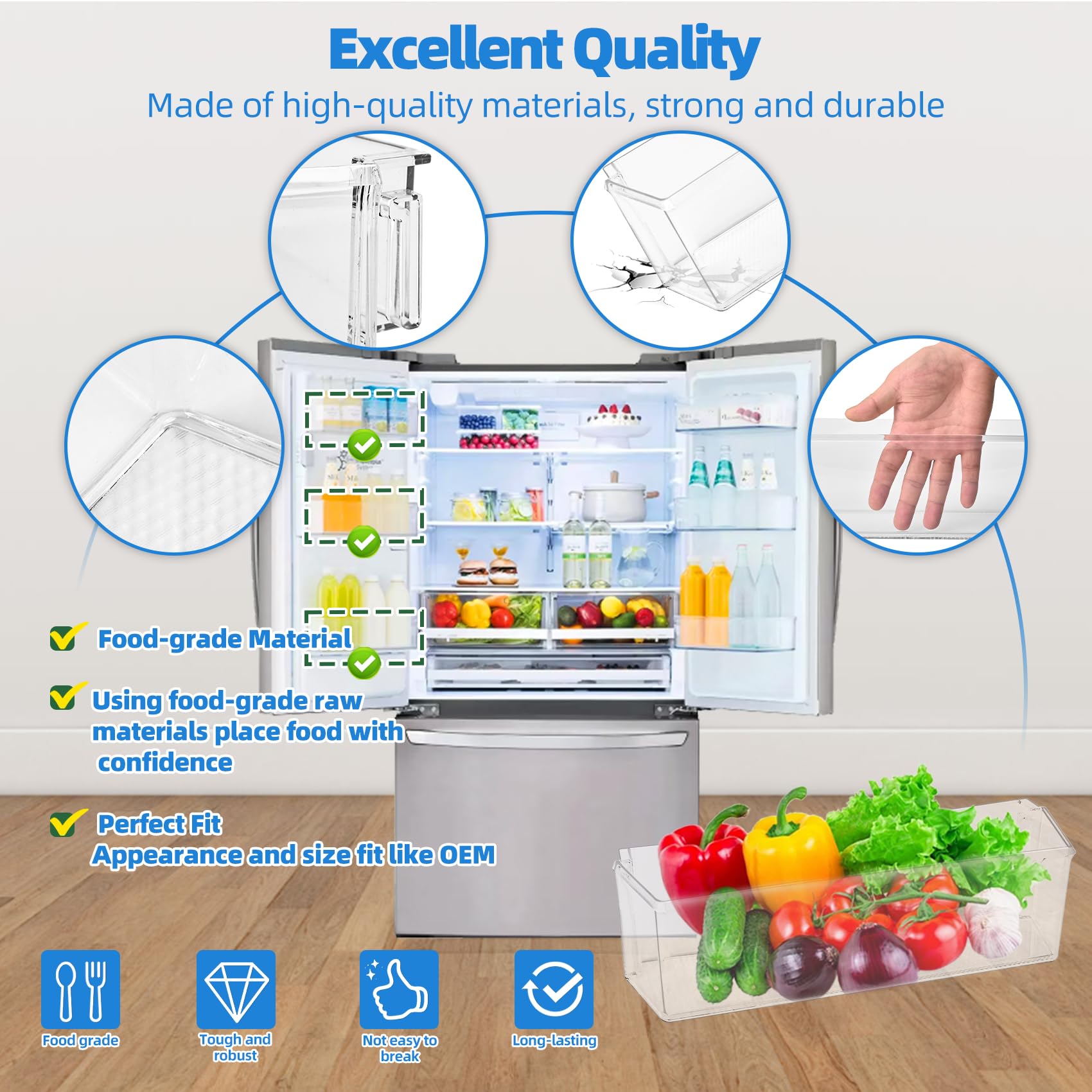 [Excellent Service] Customer satisfaction and exceptional quality are our relentless pursuit. If you have any questions, our service team will assist you within 24 hours. Additionally, you can enjoy a 2-year product service. During this period, if the MAN63948401 refrigerator door shelf bin replacement has any issues, please ask us, our professional team will do our best to solve the problem for you