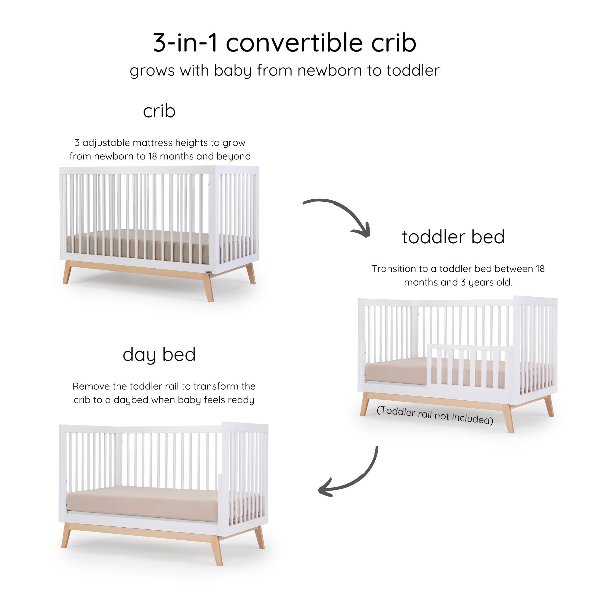 CONVERTIBLE: Give your kid room to grow! Adjustable mattress height makes it flexible for newborns to toddlers. Converts to a toddler bed or daybed with the toddler rail conversion kit (sold separately). Matching dresser also available.