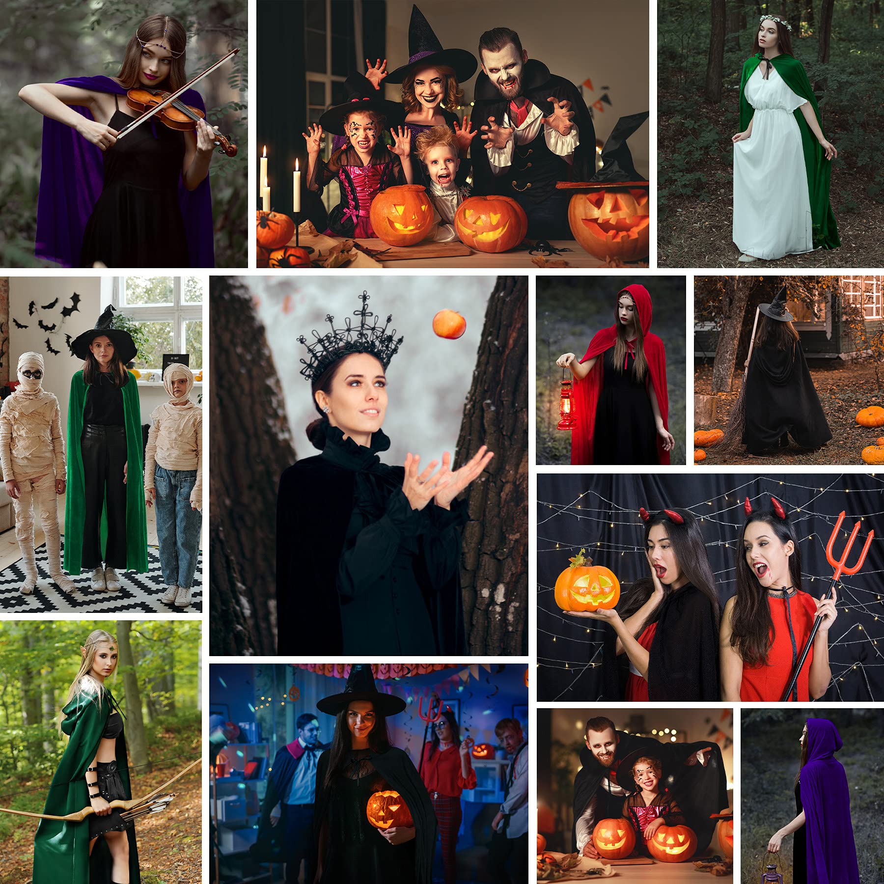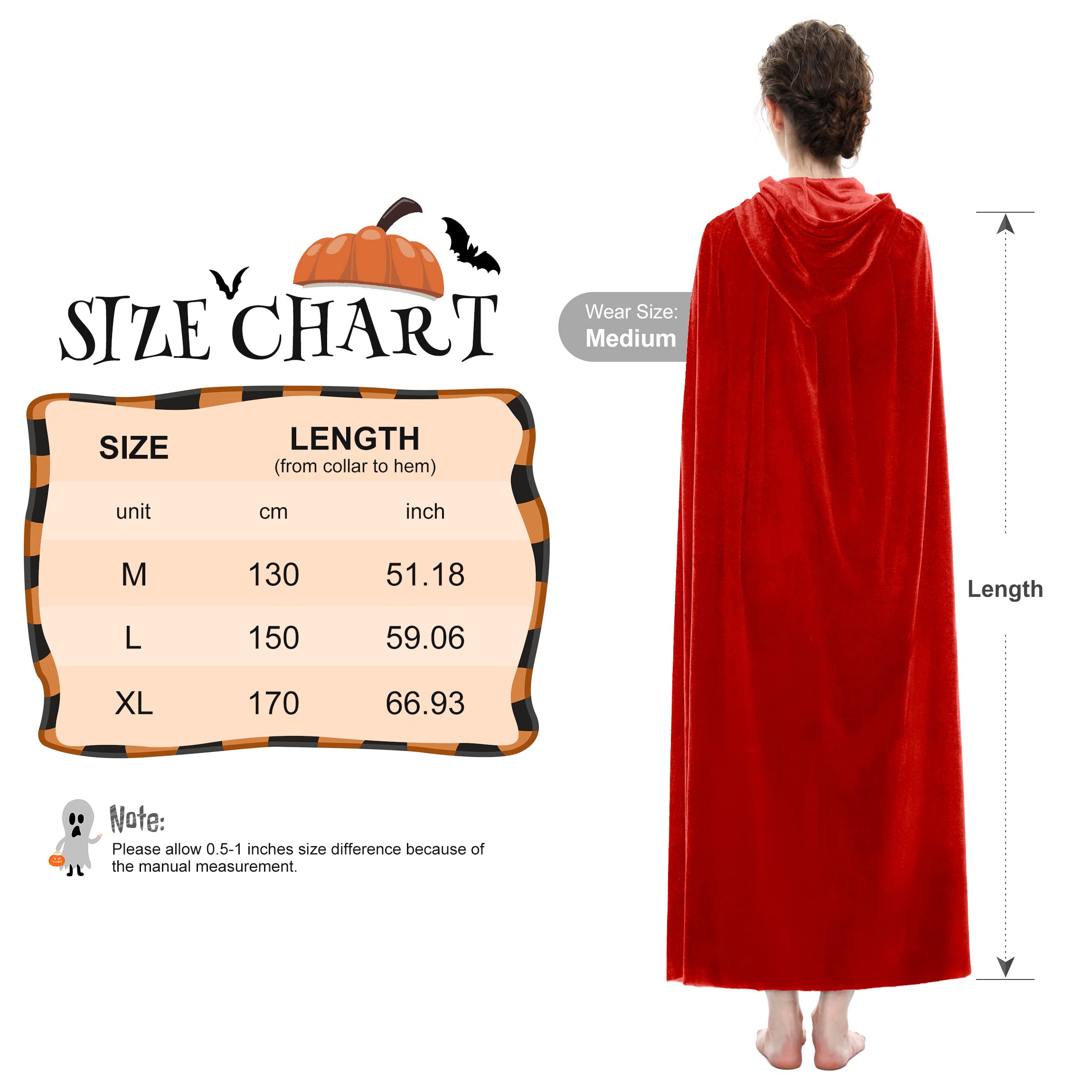 Full Length Witch Cape: The length from collar to hem is M(51.2"/130cm), L(59.1"/150cm), XL(66.9"/170cm). Full length wizard robe cloak / cape for adults generally used for both female and male, fits most dress-up occasions.