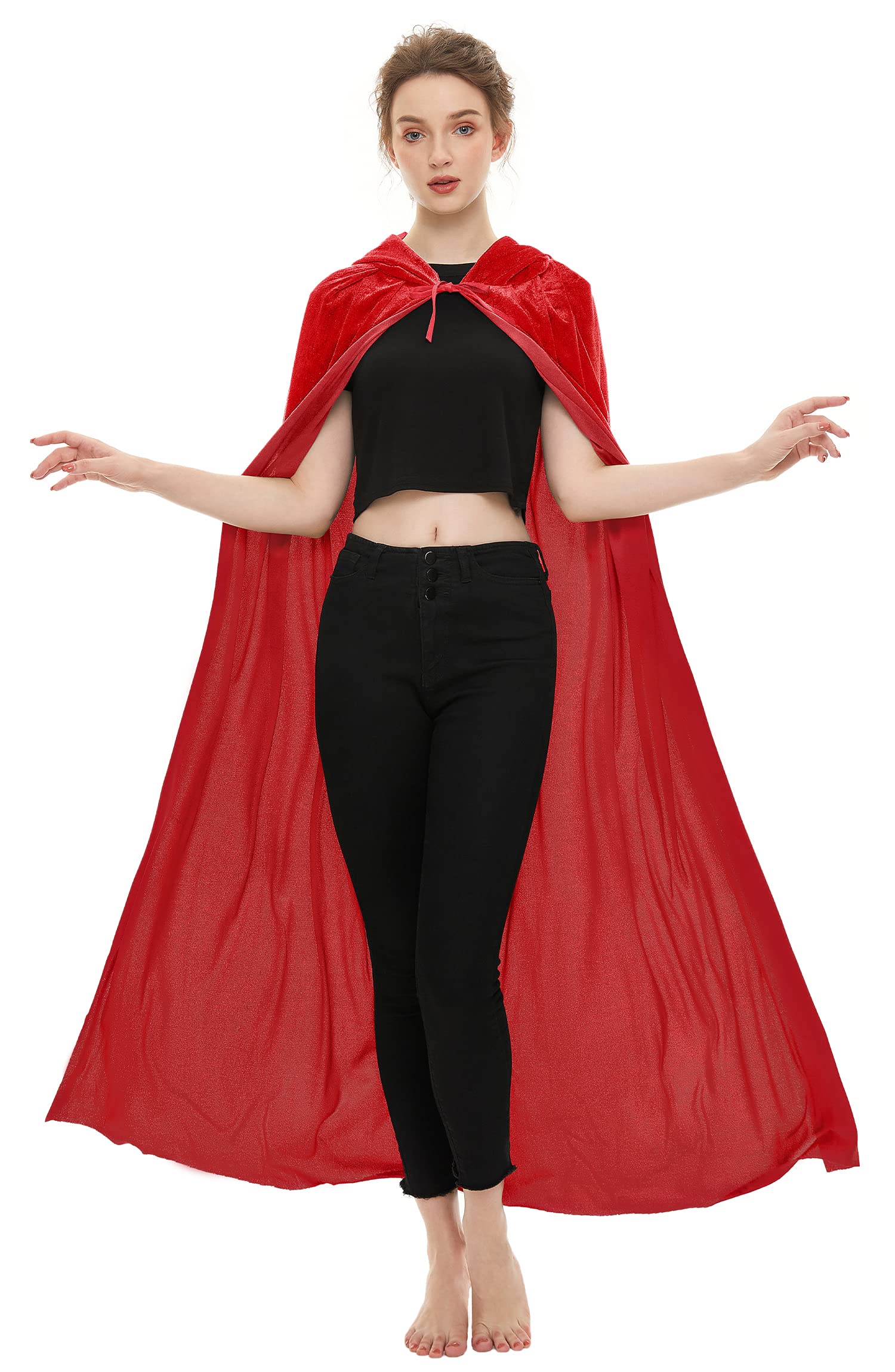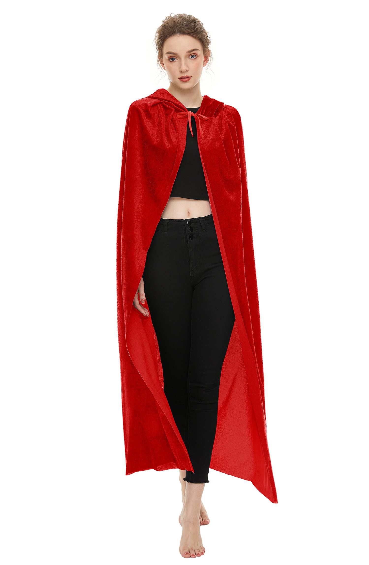 Cloak with Hood: Hooded cloak for women with string in neck to tie, not easy to be loose. Long cloaks with oversized hood make your Halloween or Cosplay Party mysterious, different colors meet a variety of cosplay needs.