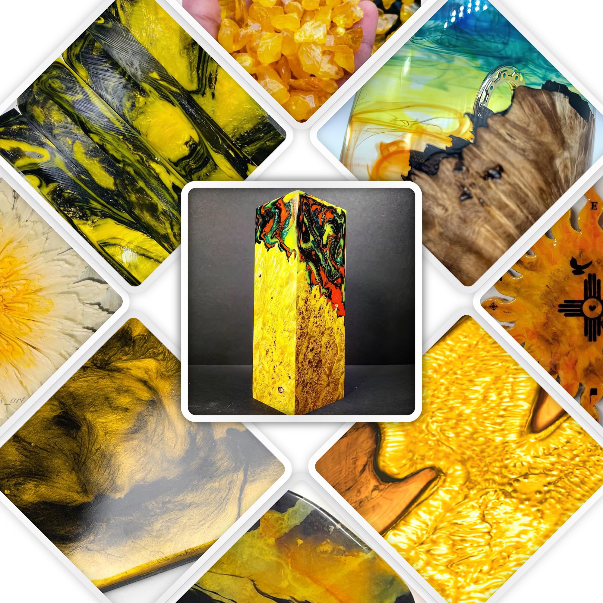 Resin Enhancement - Add Alumilite dyes to clear or opaque resins, or with epoxy for dynamic art and craft coatings, achieving translucent or solid colors for versatile use.