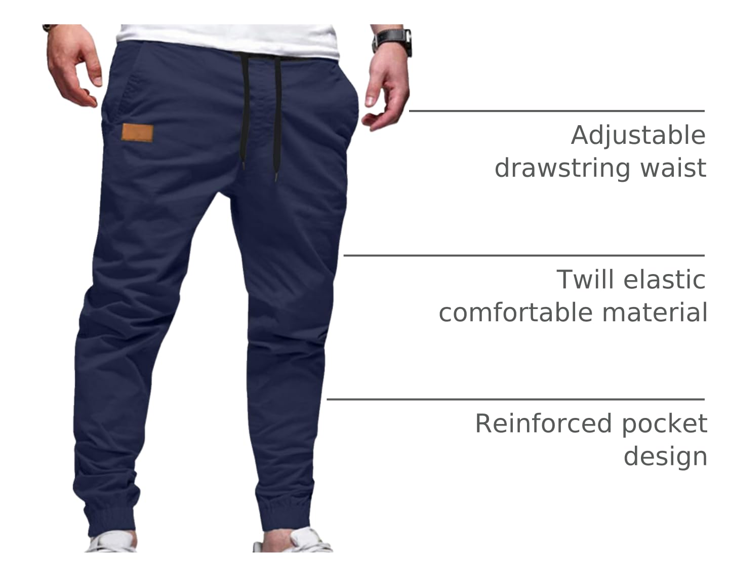 Twill elastic and comfortable Breathable material: 94%Cotton, 6%Elastane, more breathable and softer, twill casual pants made of highly elastic materials, providing great flexibility and sports comfort in daily life.