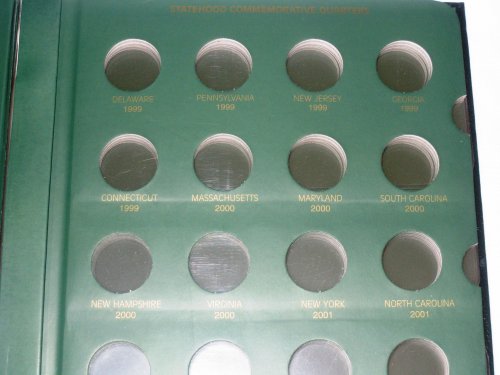 The Coin Collector albums are the best selling Coin Albums on the market. Washington Statehood Quarter Date Set 1999 - 2008+ Coin Album is better than Dansco Albums, and at a fraction of the cost. Retail value of over $24.99 DO NOT BE FOOLED BY STATE QUARTER MAPS. THIS ALBUM IS INCOMPARABLY BETTER QUALITY AND PRICE! YOU ARE GETTING AN ENTIRE ALBUM WITH PLASTIC SLIDES THAT PROTECTS YOUR COIN ON BOTH SIDES, AS OPPOSED TO A FLIMSY, CHEAP QUARTER MAP! MOREOVER, QUARTER MAPS ARE MORE EXPENSIVE! SO WHAT WOULD YOU RATHER BUY A QUARTER MAP AT $7.99 OR A MUCH BETTER QUARTER ALBUM AT $6.99? THere are 10 Additional Empty Slots post 2008 for you to store future coins. Store all your Coins by Title, Date, and Mint. VIEW YOUR COINS ON BOTH OBVERESE AND REVERSE. The Coin Albums Protect Your Coins From Corrosion. Coin Albums Do NOT Contain PVC. The Coin Albums are made of top of the line quality and have a beautiful dark green leather like design. Coin albums may be stacked or stored on a bookshelf for easy viewing.There are 20 different Titles Available To Purchase. Please Check my storefront y101