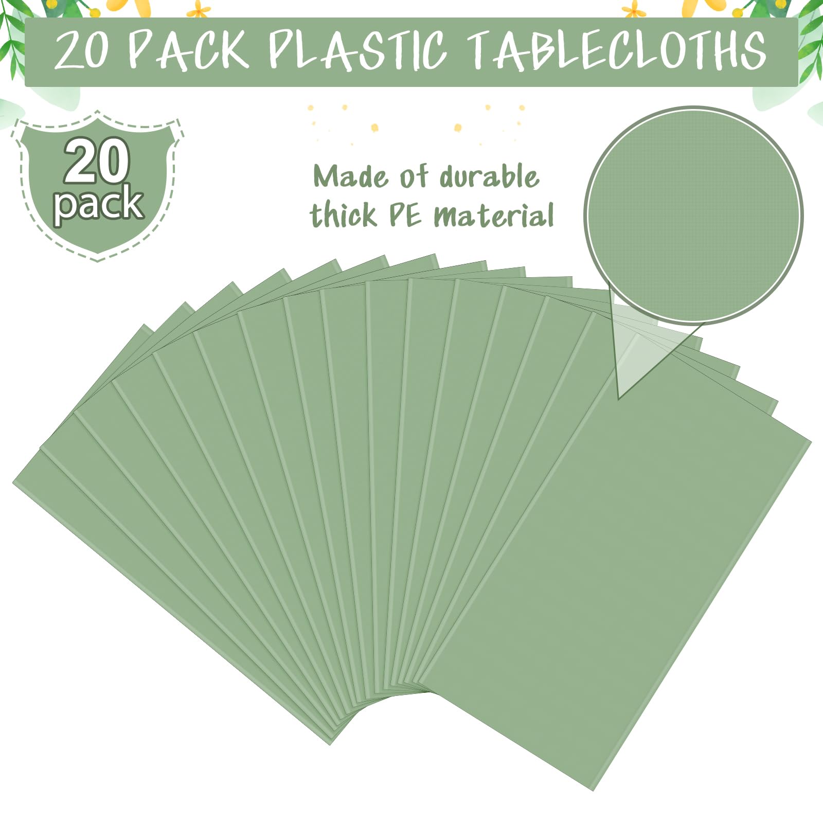 Wide Application: this sage green plastic rectangle tablecloth could be matched with a variety of themed party decorations, which can also be served as dust sheets or table mats at birthday parties, family gatherings,baby shower,bridal shower,picnics,spring party and also perfect for daily use.