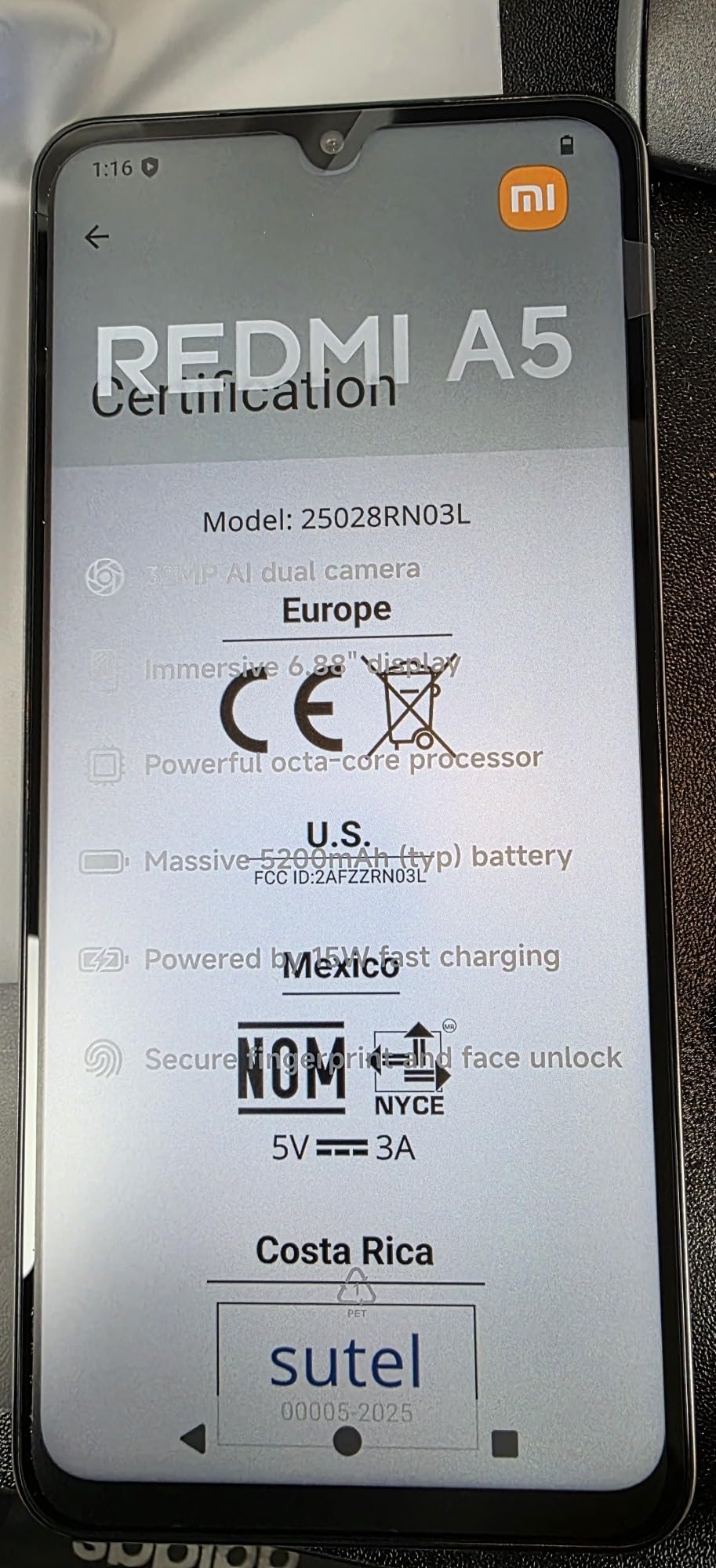32MP AI dual camera Immersive 6.88" display Secure fingerprint and face unlock Massive 5200mAh (typ) battery Powerful octa-core processor 32MP super-clear images AI all-around dual camera A new AI dual-camera imaging system for clearer images and an enhanced photography experience. With a brand-new camera watermark for more unique photos. Extraordinary night scene photography Clear and beautiful images Redmi A5 features a larger camera sensor, bringing 18% more light capture and enabling you to take extraordinary photos in low light and even at night. 8MP front camera Even selfies look fantastic An upgraded front camera with a fill light ensures perfect selfie quality. 6.88" high refresh rate display Smoother and more immersive experience Lose yourself in films, books and documents with the large display. Supports up to 120Hz adaptive refresh rate for smoother performance. Boasts full DC dimming, low blue light, no visible flicker and a reading experience reminiscent of a real book so you can read for long periods without damaging your eyes. Wet touch technology Precise touch control even with wet hands. Refreshed design language Enhanced appearance A stylish flat frame with a highlighted camera deco creates a design that is as modern as it is functional. Lightweight and slim More comfortable grip Massive 5200mAh (typ) Long-life battery The ultra-large battery capacity and 15W fast-charging option make the device ideal for reading and watching videos for long periods without worrying about running out of power. Even after over 1,000 charging cycles, battery life endures unwaveringly.