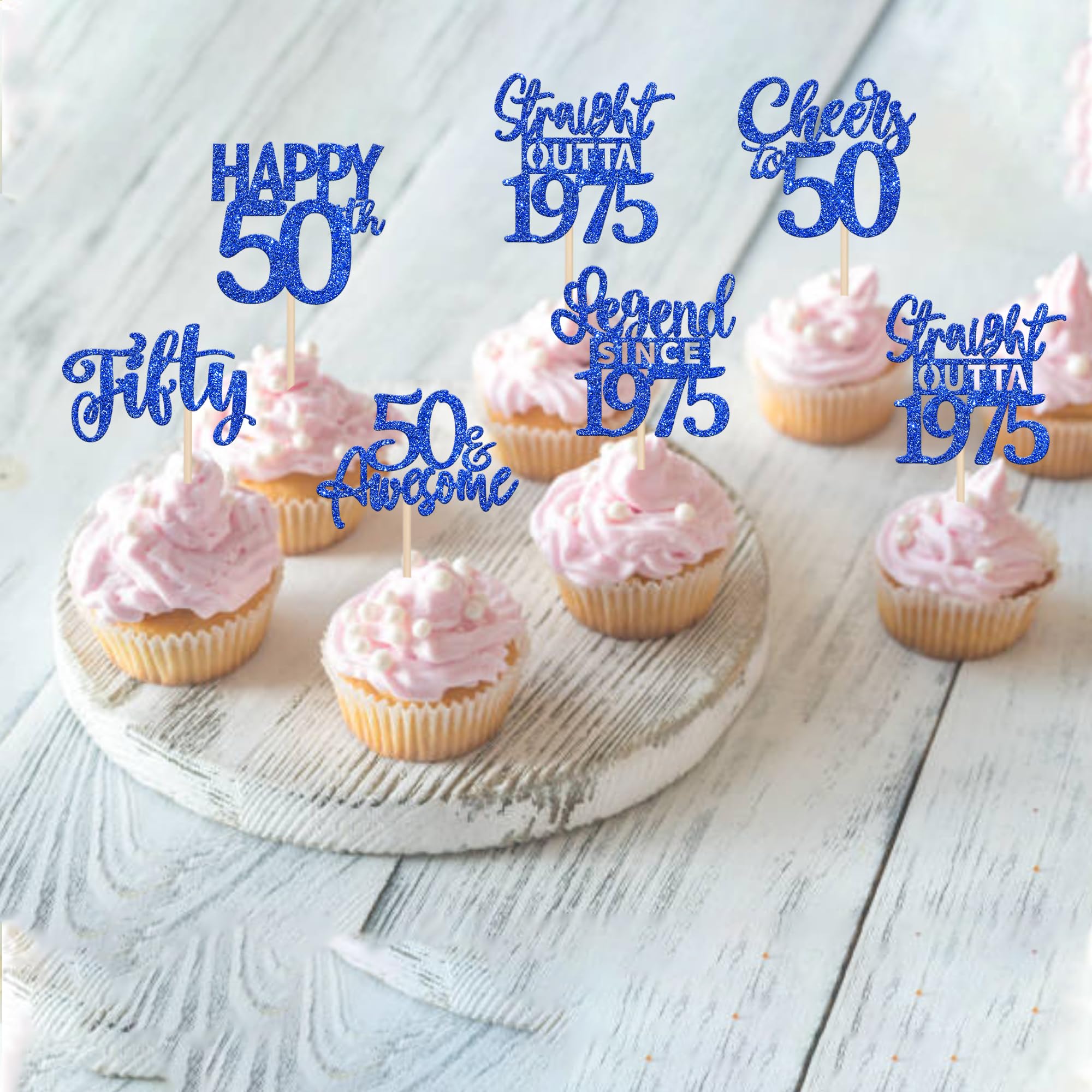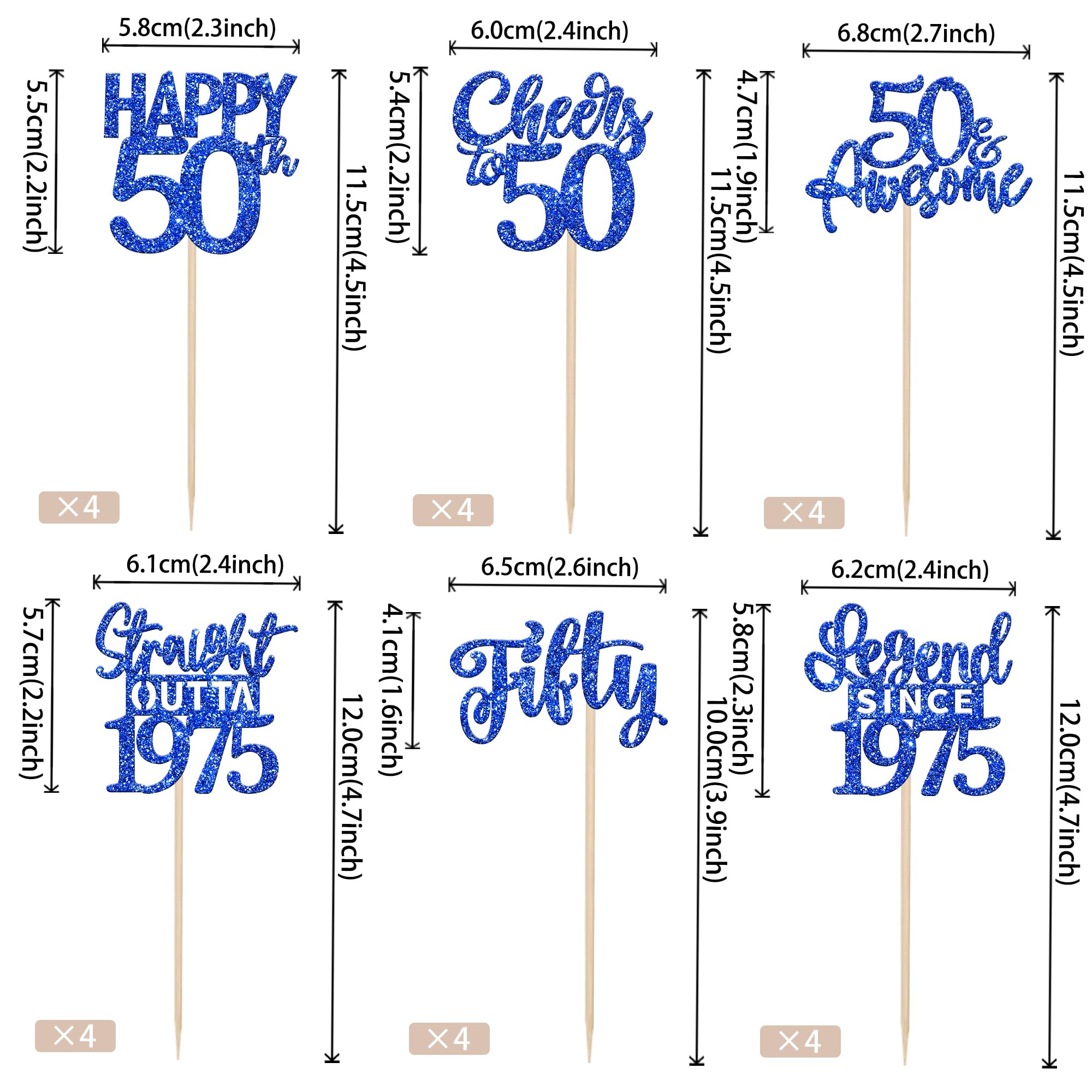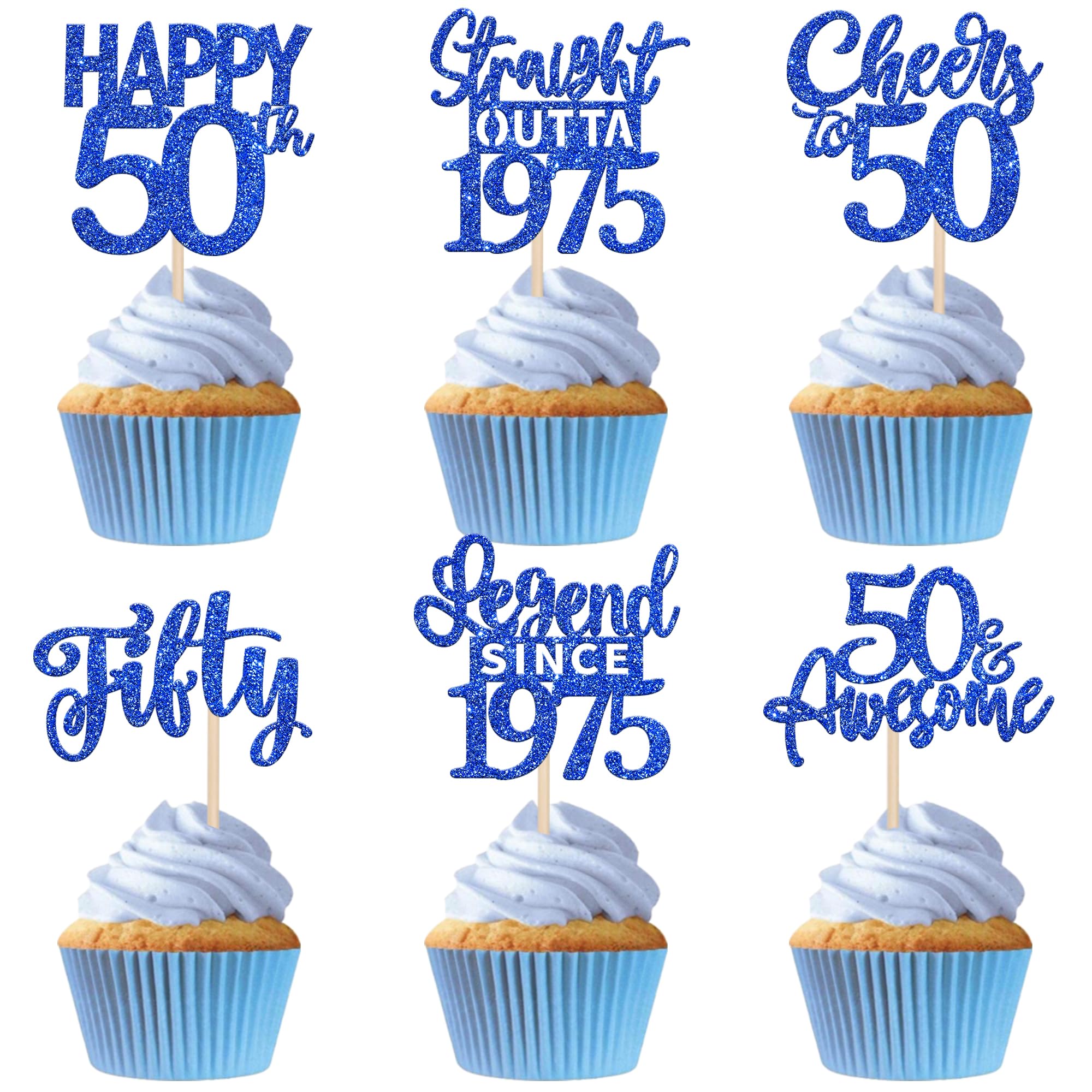 24PCS Happy 50th Birthday Cupcake Toppers Fifty Straight Outta 1975 Cupcake Picks Cheers to 50 Birthday Decorations Lengend Since 1975 Cupcake Decorations for 50th Birthday Anniversary Party Cake Decorations Supplies Perfect for legend since 1975 theme party, 50th anniversary theme party,cheers to 50 years theme party, 50 awesome theme party cupcake decorations supplies. Pack of 24 pcs,4 pcs of each design. The size is 2.3*4.5/ 2.4*4.5/ 2.7*4.5/ 2.4*4.7/ 2.6*3.9/ 2.4*4.7 inch ( with stick ) Made of high quality paper card stock,thick and sturdy. These straight outta 1975 cupcake toppers are one side glitter, another side is white, and they are intended for decoration only, please do not put them in oven or microwave. If the item you received has any defects, please contact us immediately.we will deal with it within 24 hours.