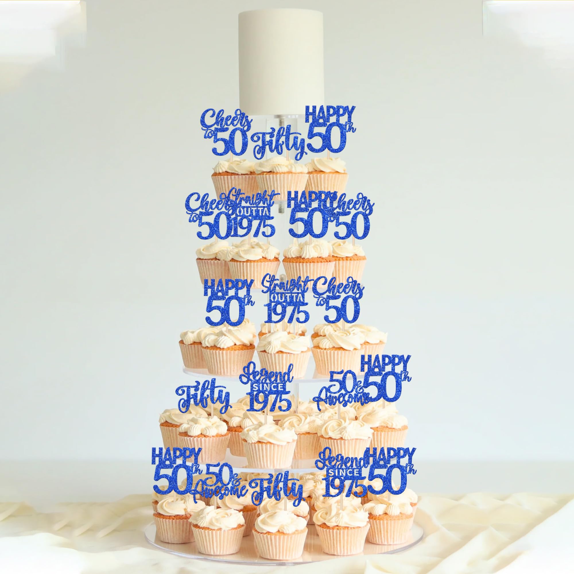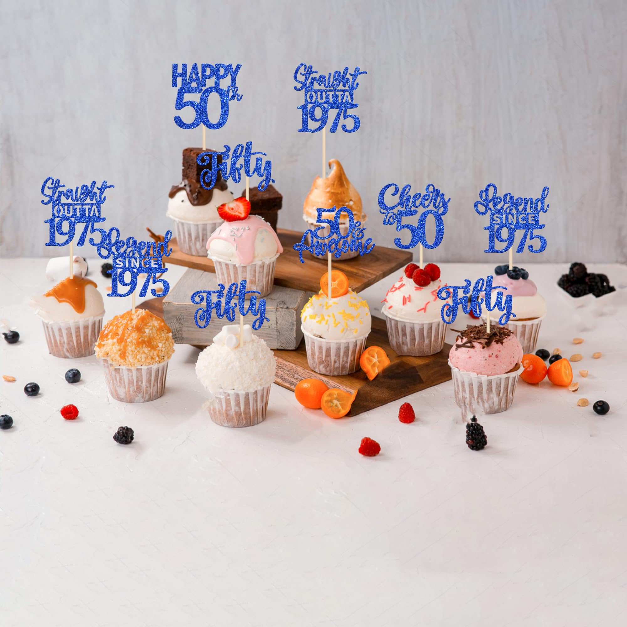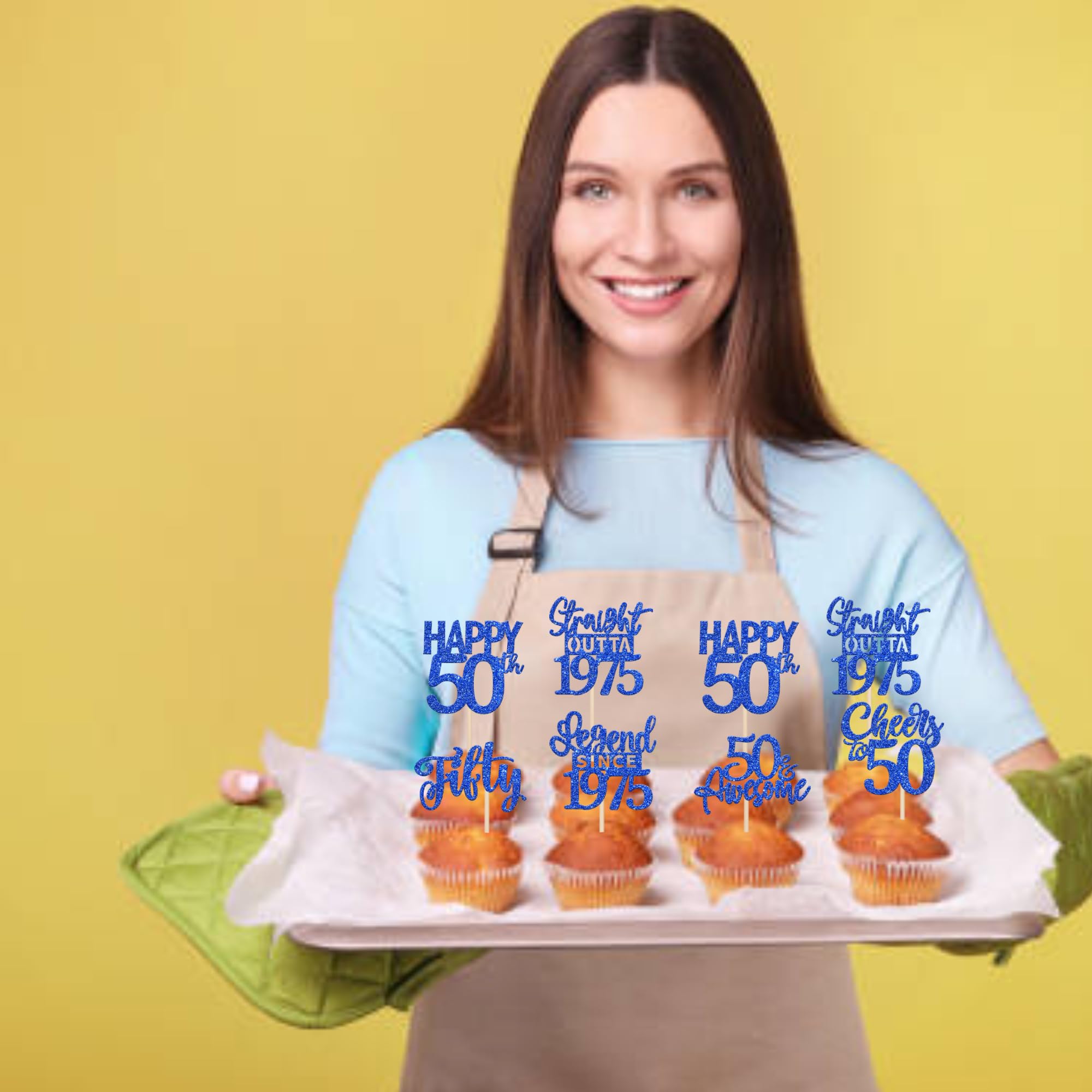 24PCS Happy 50th Birthday Cupcake Toppers Fifty Straight Outta 1975 Cupcake Picks Cheers to 50 Birthday Decorations Lengend Since 1975 Cupcake Decorations for 50th Birthday Anniversary Party Cake Decorations Supplies Perfect for legend since 1975 theme party, 50th anniversary theme party,cheers to 50 years theme party, 50 awesome theme party cupcake decorations supplies. Pack of 24 pcs,4 pcs of each design. The size is 2.3*4.5/ 2.4*4.5/ 2.7*4.5/ 2.4*4.7/ 2.6*3.9/ 2.4*4.7 inch ( with stick ) Made of high quality paper card stock,thick and sturdy. These straight outta 1975 cupcake toppers are one side glitter, another side is white, and they are intended for decoration only, please do not put them in oven or microwave. If the item you received has any defects, please contact us immediately.we will deal with it within 24 hours.