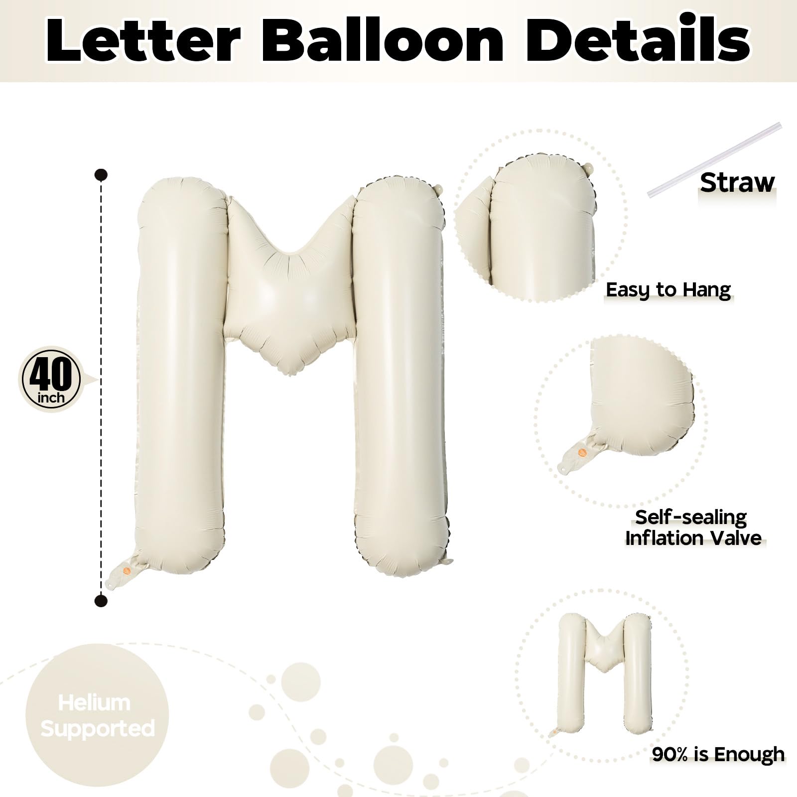 💕 Perfect Size & High Quality 💕 These cream white MOM balloon letters are made of high quality aluminum foil, all the alphabet balloons are safe, durable, non-toxic, strong and and reusable. Just fill 90% of the balloon that could allow the balloon to expand completely.