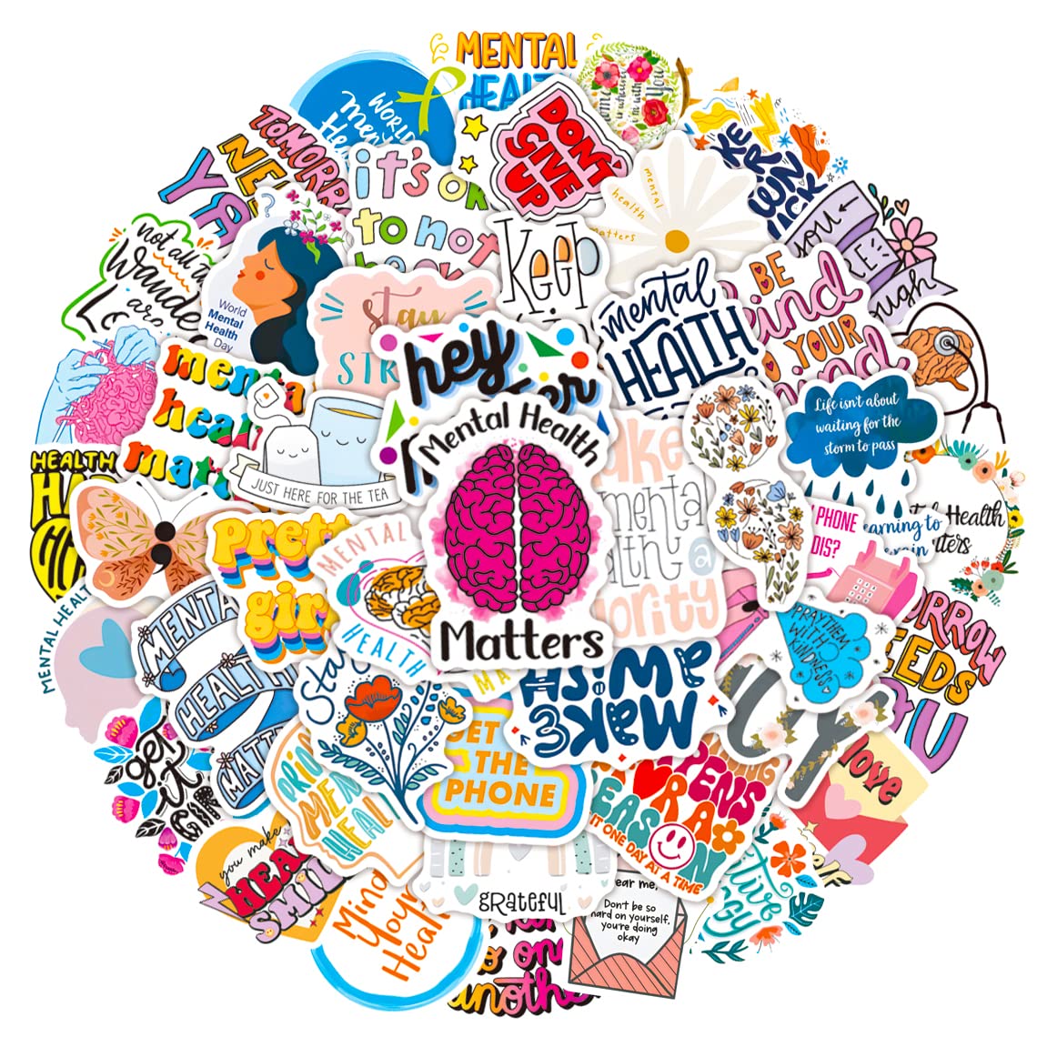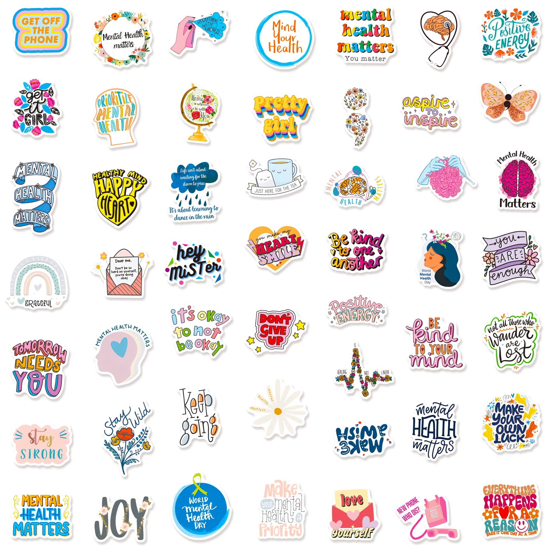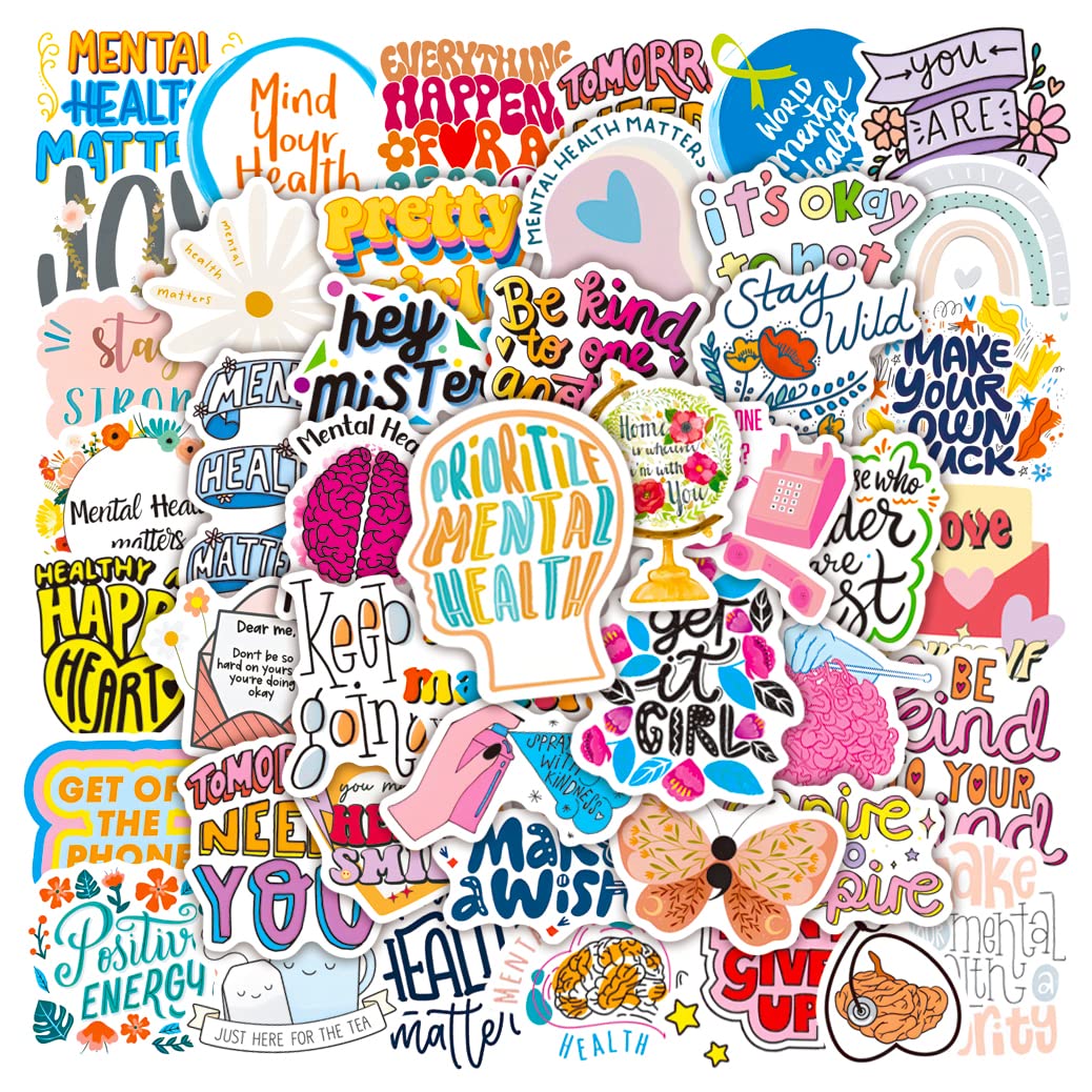 【Cute Stickers】Every sticker pack contains 50 pieces of different stickers ranging in size from 2 to 3 inches. All the stickers are designed for Mental Health Matters. Cute stickers can bring a lot of fun to your life.