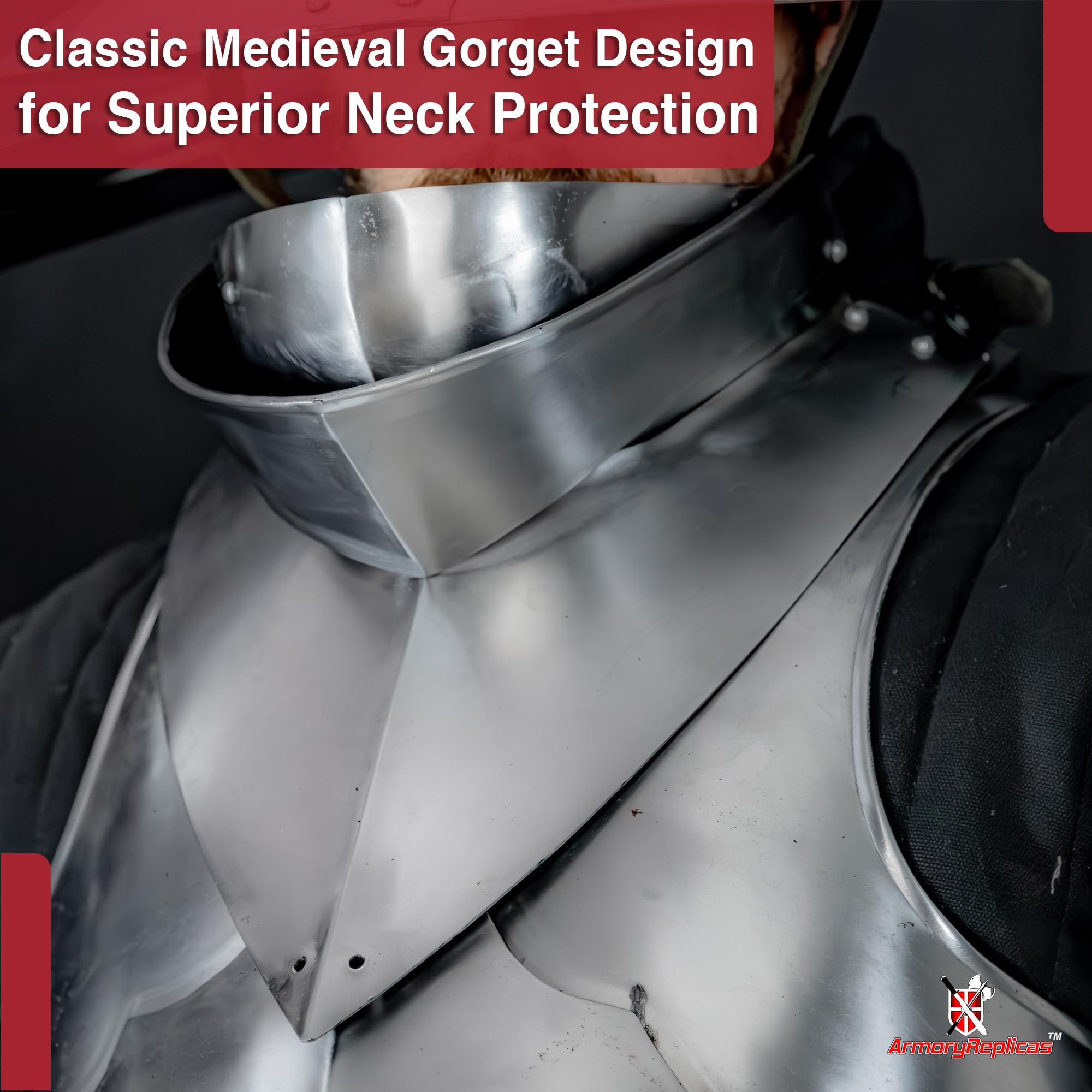 Full Face & Neck Protection: This polished 16-gauge steel bevor guards the lower face, neck, and collar—ideal for LARP, reenactments, and medieval displays.