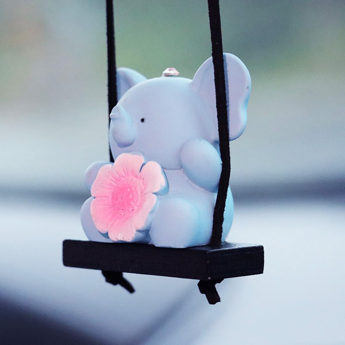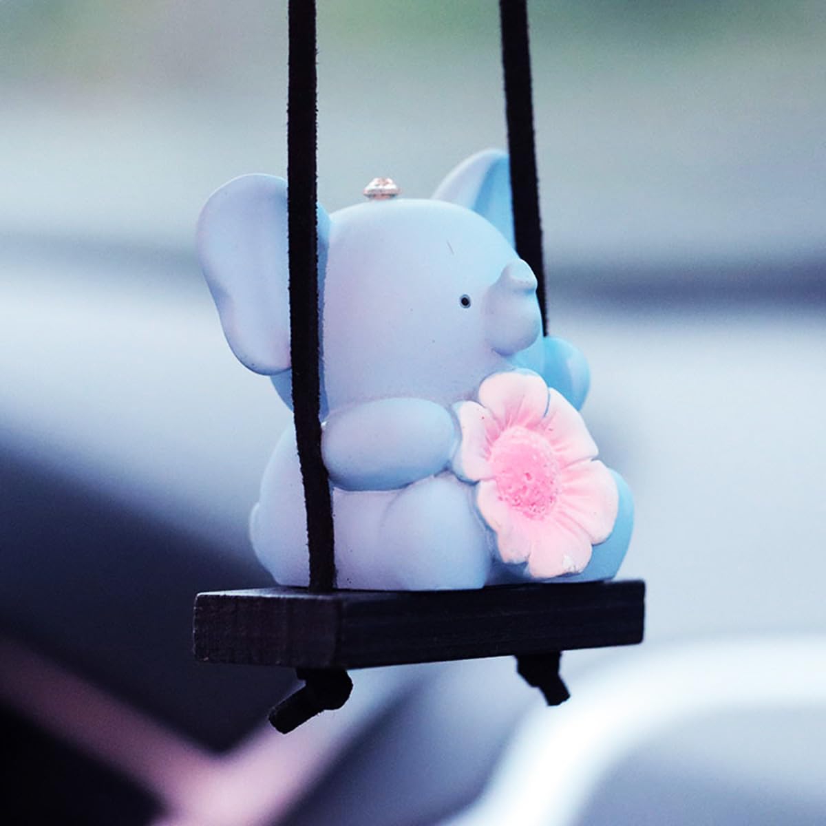 ADORABLE DESIGN: This cute resin swinging car hanging ornament features cartoon animals holding flowers in a charming hanging pendant perfect for decorating your car interior.