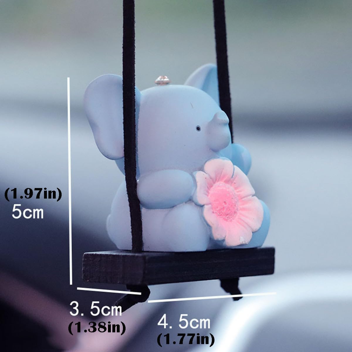Features 1. This adorable hanging ornament adds a touch of whimsy to any vehicle. 2. Featuring a cute cartoon animal holding a flower, it will hang gracefully from the rear view mirror, swinging with the motion of the car. 3. Its resin construction gives it durability to withstand daily driving, while maintaining an eye-catching design that will put a smile on anyone's face. 4. Whether as a gift for a friend or to liven up your own commute, this hanging pendant is a fun and affordable way to accessorize the interior of any automobile. 5. Its petite size keeps it neatly out of the way but ensures the charming animal design can be seen and enjoyed. Specification: Material: Resin Size: Panda: 4.5*4*5cm/1.77*1.57*1.97inch Bunny: 4.5*4*5.5cm/1.77*1.57*2.17inch Fox: 4.5*3.8*5cm/1.77*1.5*1.97inch Elephant: 4.5*3.5*5cm/1.77*1.38*1.97inch Length of Hanging Rope: 30cm/11.8in(Adjustable) Package Include: 1 x Swing Cartoon Animal Car Hanging Ornament Note: 1. Due to the different monitor and light effect, the actual color of the item might be slightly different from the color showed on the pictures. Thank you! 2. Please allow 1-2cm measuring deviation due to manual measurement.