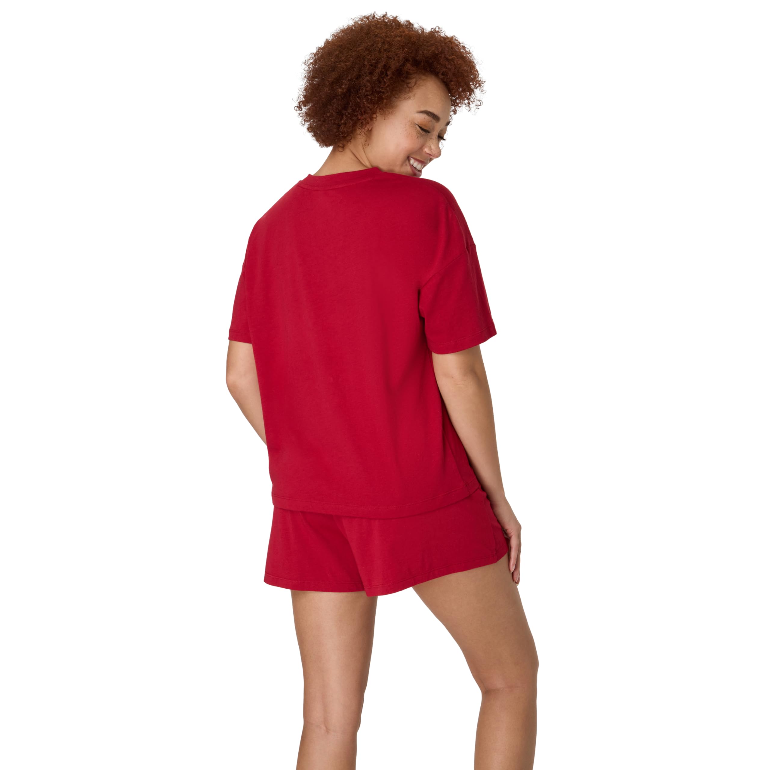 THE FIT - Boxy T-shirt delivers a roomy, loose fit. Sleep shorts feature a high waist and a 3.25" inseam with a slightly flared leg.