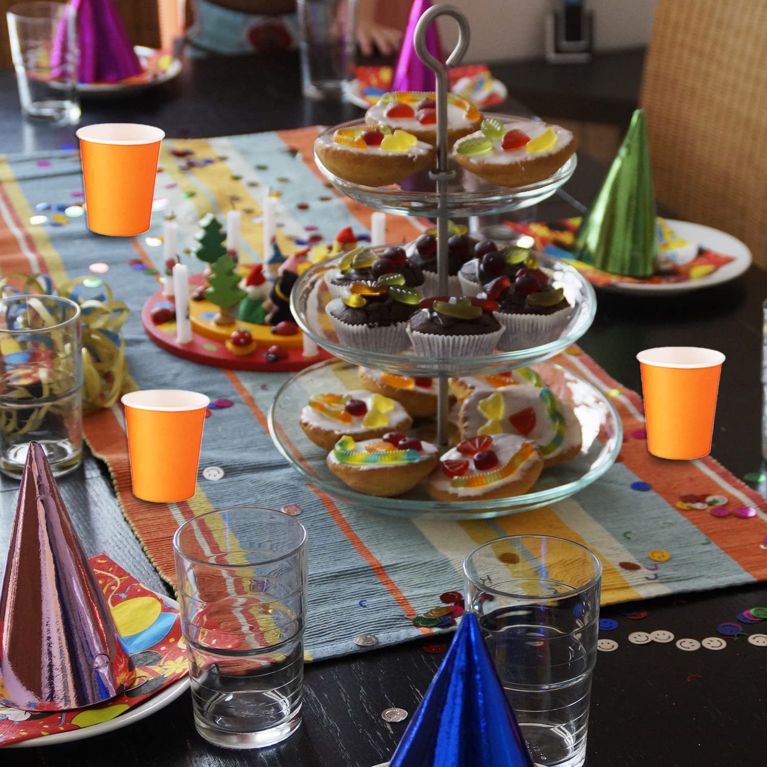 Paper Cups for DIY: Our orange Halloween paper cups are also great for kids' DIY tools and sports stacking cups. The drinking cups which are bright and attractive, you can DIY novel crafts out of the colorful cups based on your design