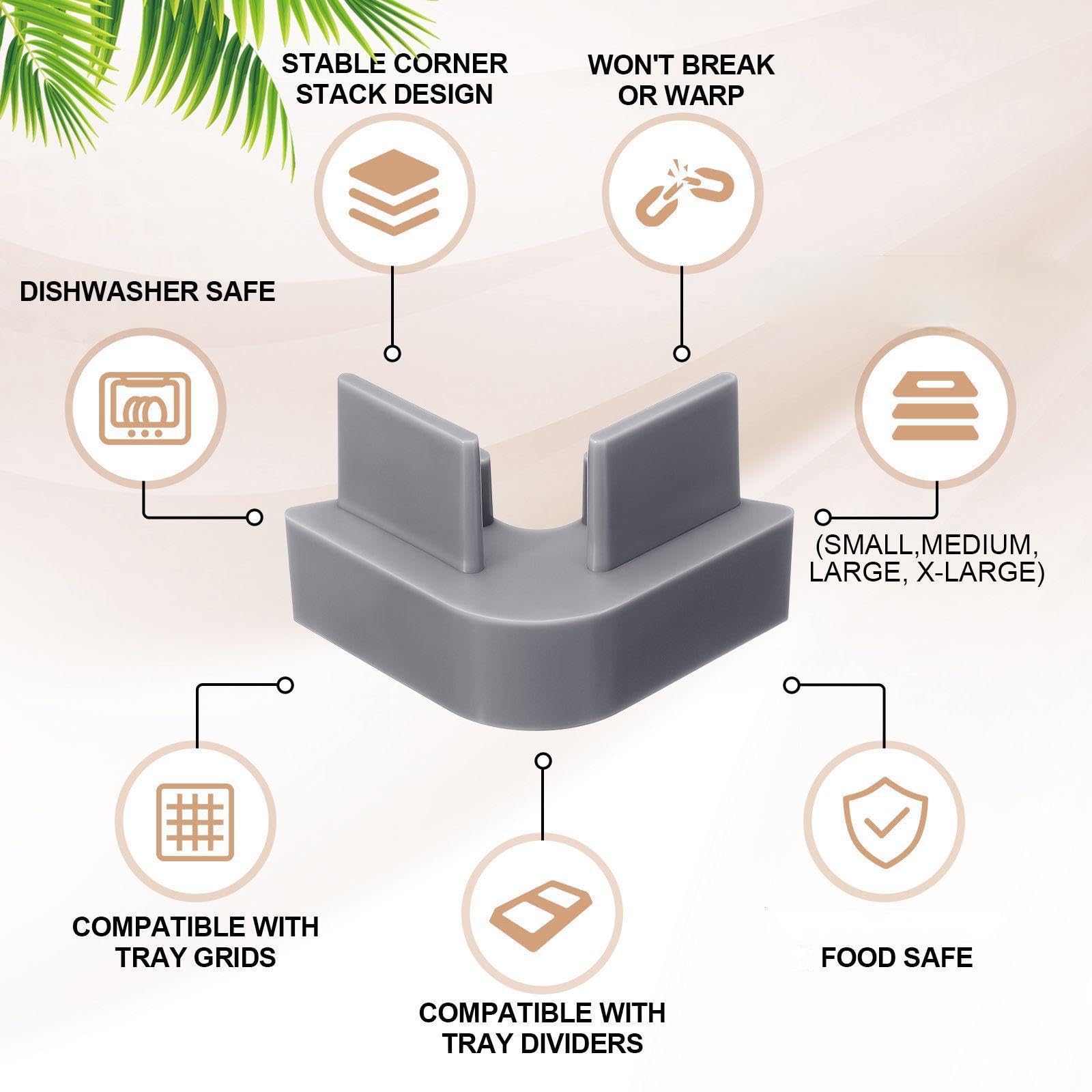 Easy to Use: our tray stackers set are very easy to use, you only need to place the stackers on the countertop, connect them to the four corners of the tray, and you can easily stack and disassemble them, which is very easy to take off and put on