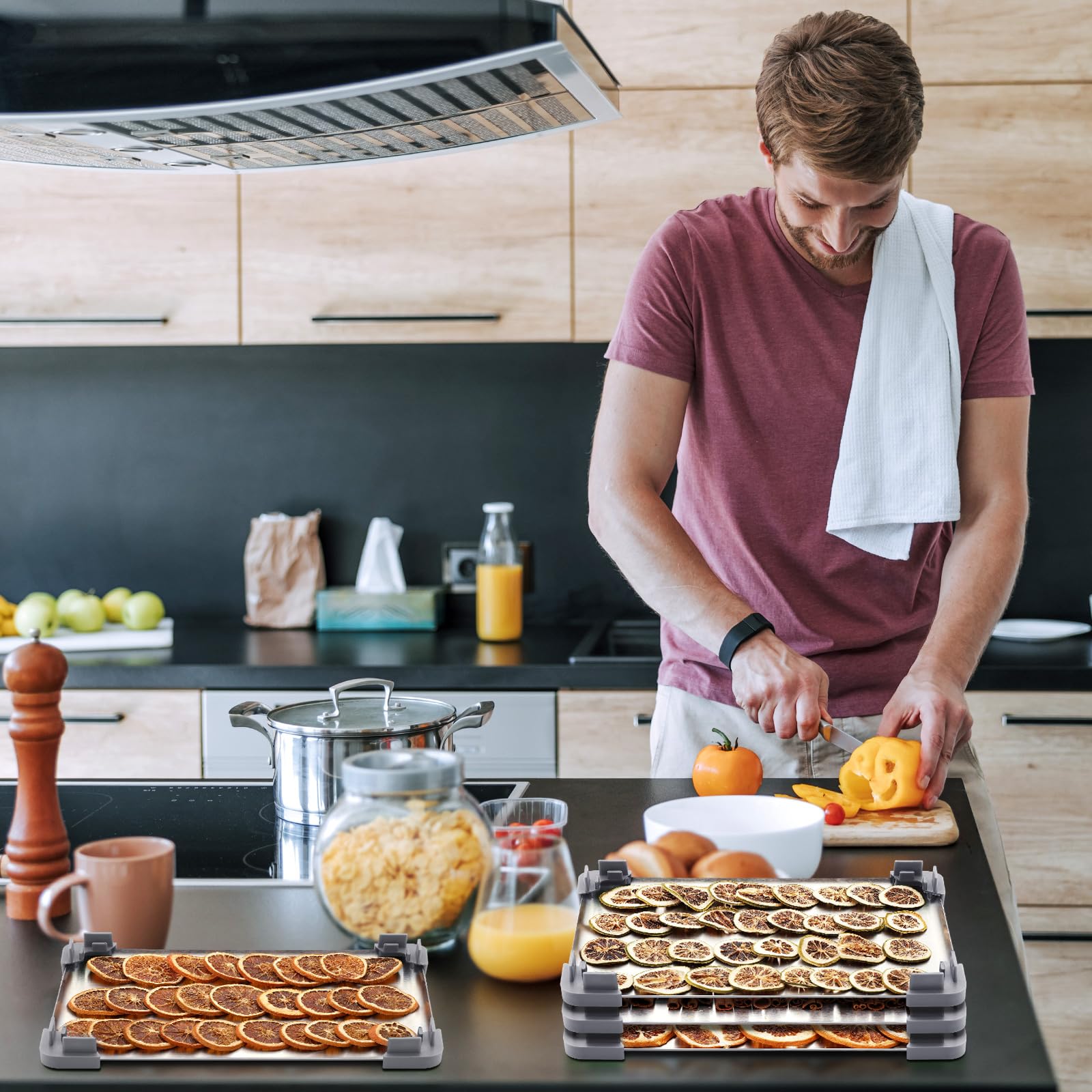 16 Pieces Set: includes 16 gray tray stackers which will stack 5 Freeze Dryer trays; After prepping your food, easily carry the entire stack of trays to your freeze dryer or pre-freeze without trays sliding all over the place