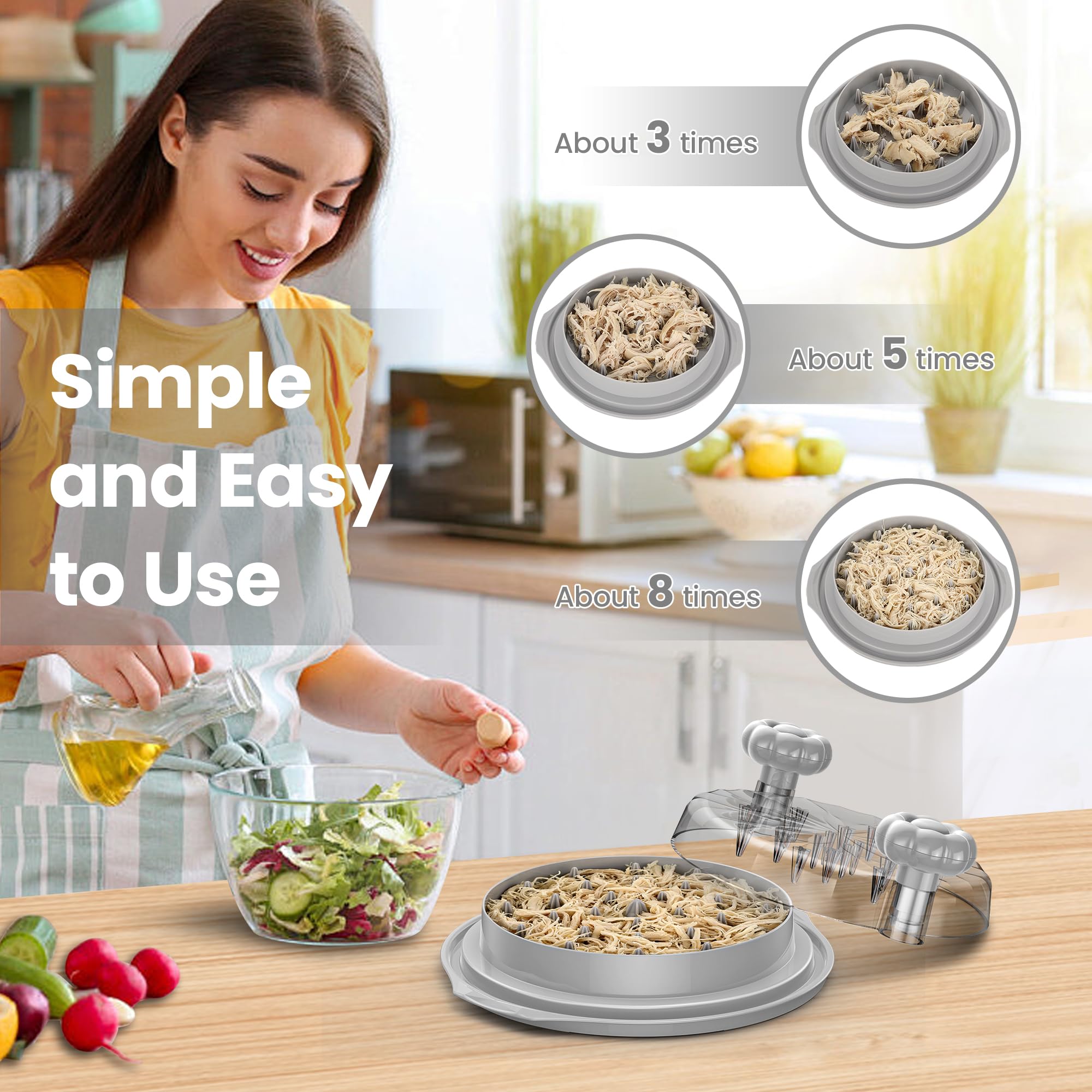 【Secure Grip & Stronger Anti-Slip】Beiyunee versatile rotating meat chicken shredder's ergonomic handle provides a comfortable and secure grip for easy operation.The sturdy base of shredding chicken tool machine featuring four upgrate anti-slip strips can hold in place during use.