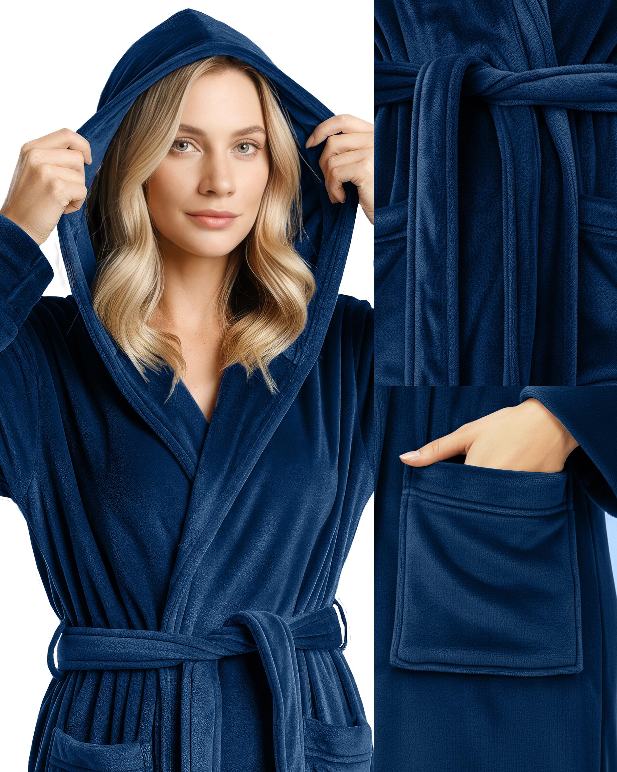 Description Enjoy refined comfort with our Women’s Hooded Bathrobe, thoughtfully created for cozy, luxurious relaxation. Designed with a soft hood for extra warmth, this bathrobe is crafted from plush, fluffy fleece with an ultra-soft feel that’s gentle on the skin. Made for comfort instead of absorbency, this non-absorbent bathrobe is ideal for post-shower lounging, peaceful mornings, or relaxing evenings at home. Its stylish design and premium appearance bring everyday luxury while keeping you warm and comfortably at ease.
