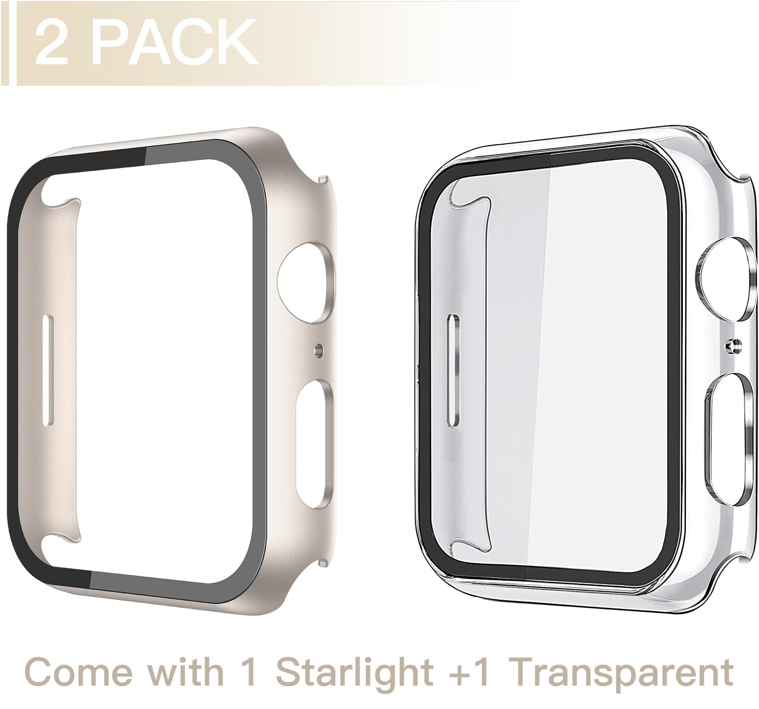 【Kindly Tip】What you receive will be 1 starlight and 1 transparent protective cases with screen protector. This Screen Protector is not waterproof, in case of accidental water ingress or when fogging occurs between your Apple Watch screen and the watch cover, please dry it with a soft cloth for normal use.