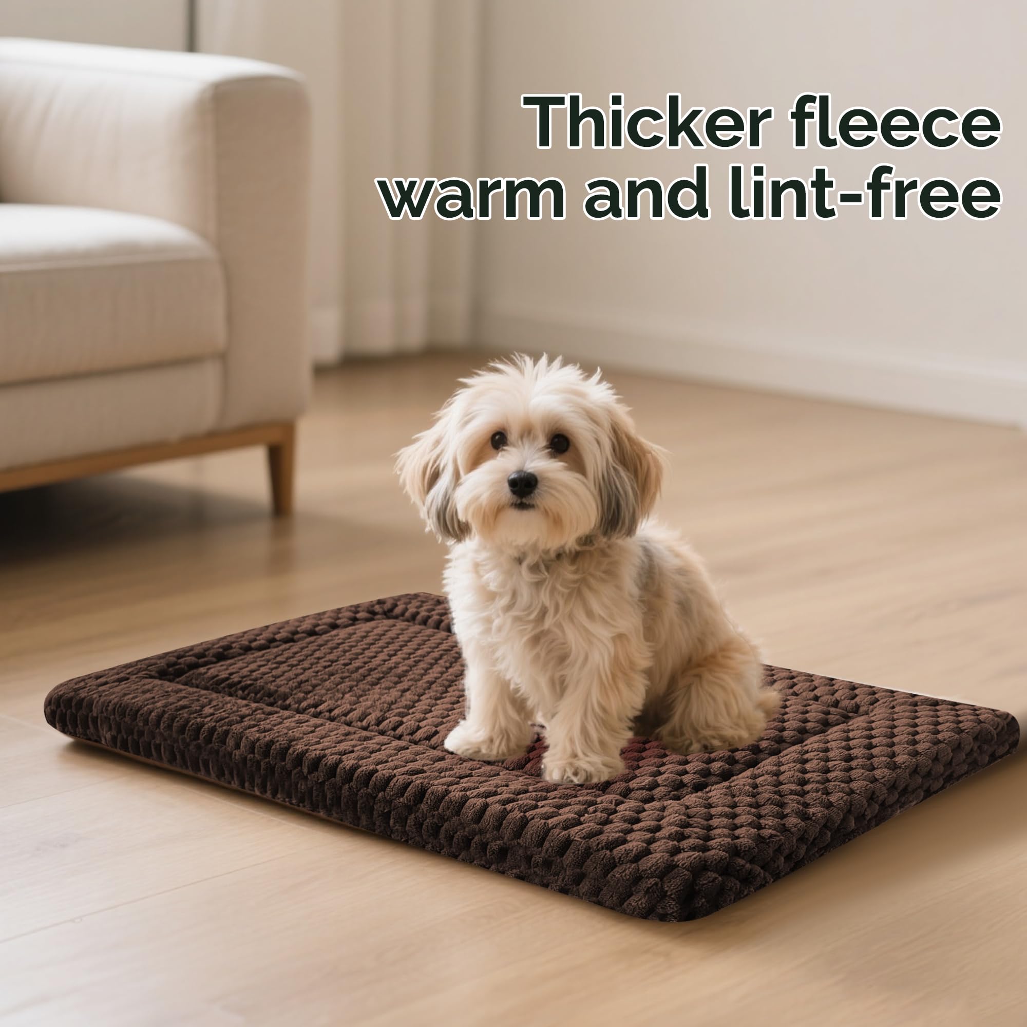 Dual-Sided for All-Season Comfort: This dog crate mat features a reversible design tailored for year-round use. One side is crafted with soft, warming plush—ideal for keeping pets cozy in colder months (perfect as a dog bed for crate). The flip side offers breathable canvas for a cool surface in warmer weather, doubling as a cat bed or kennel pad.