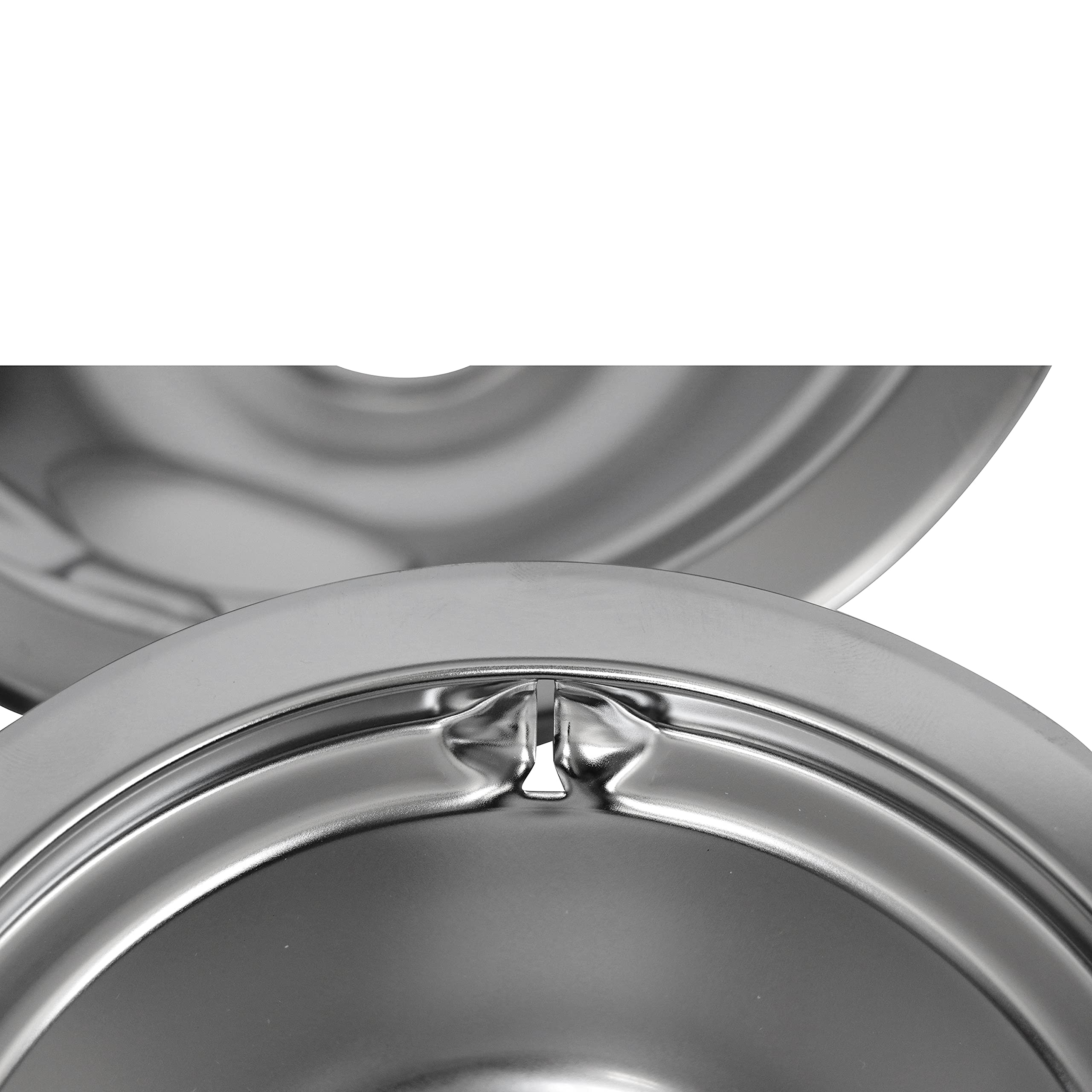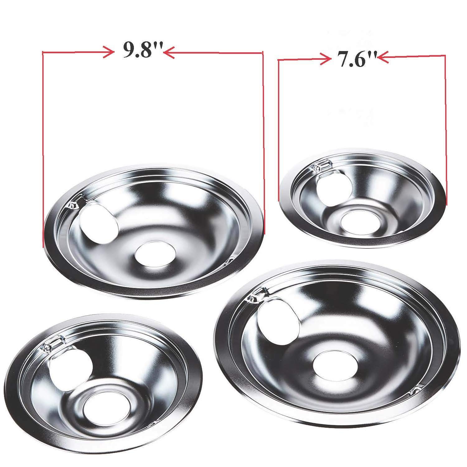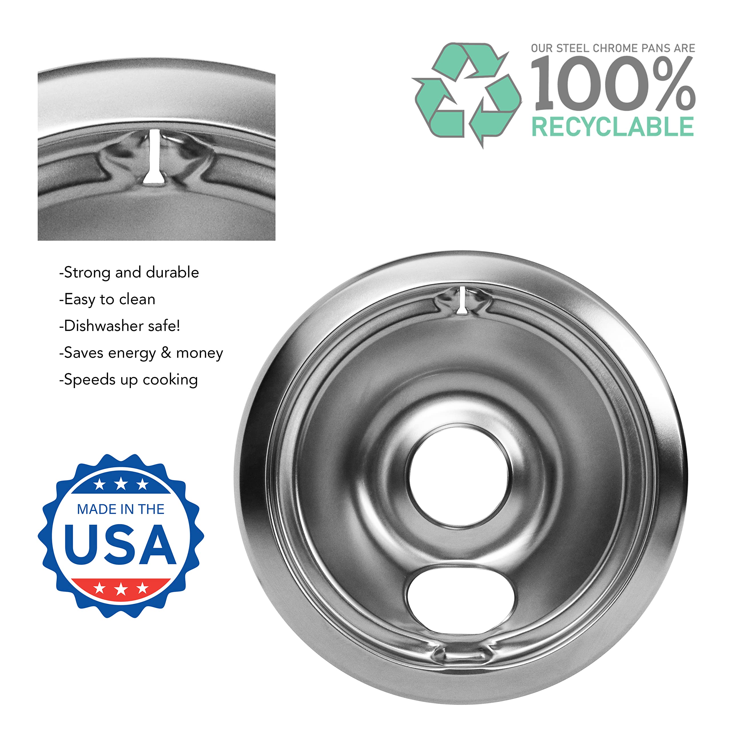 Includes (2) 6" and (2) 8" chrome pans. 6" measures 7.6". 8" measures 9.75"