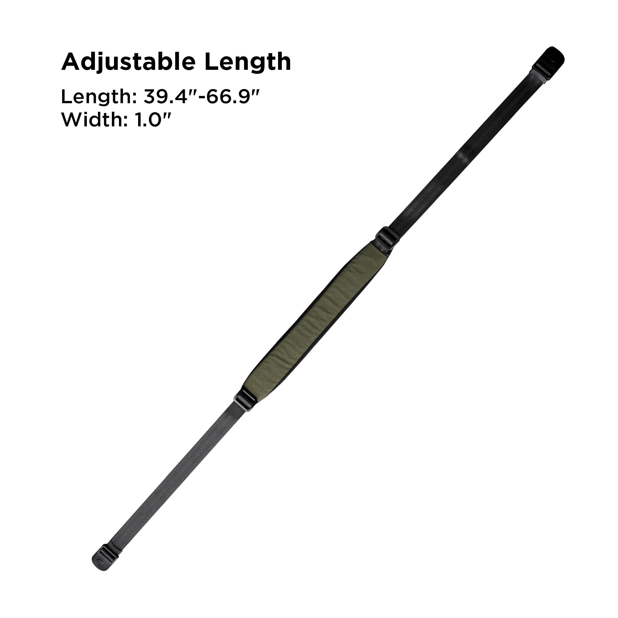 FULLY ADJUSTABLE: 39”-67” length range with smooth-sliding buckle accommodates crossbody, shoulder and custom carrying positions for all heights. In addition to the length, the pad placement can be adjusted as well, affording you a comfort carry no matter your bag placement.