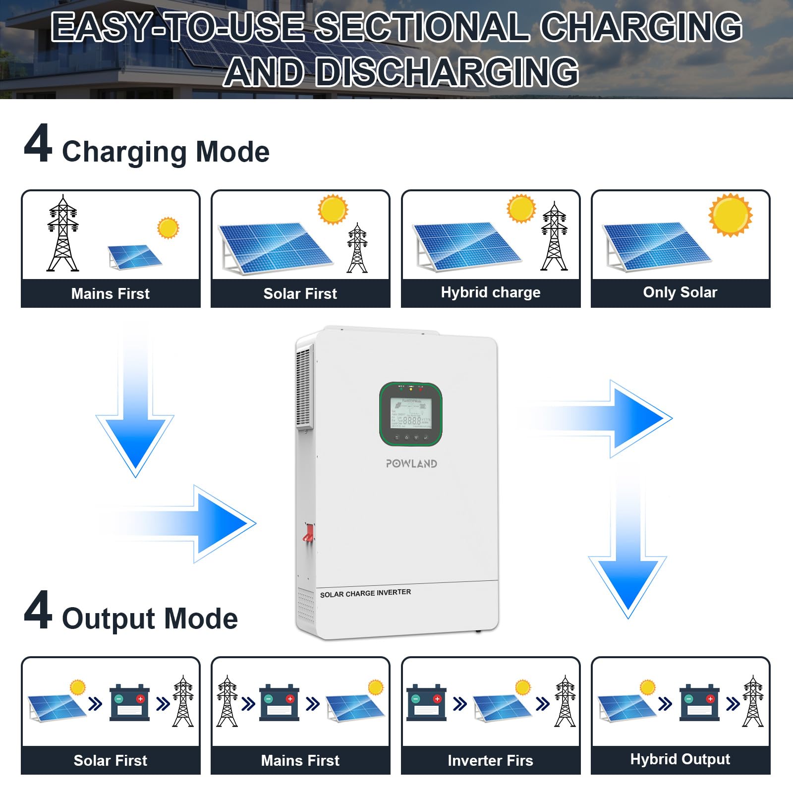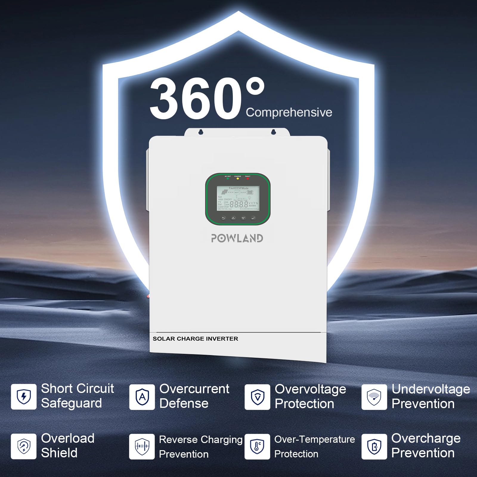 【Complete Protections】POWLAND inverter has Overload/Over temperature/Short circuit protection. Smart design for optimizing battery performance. Intelligent variable speed fan efficiently dissipate heat and extend system life. Compatible to mains voltage or generator power, Automatic restart when AC power is restored. We will always provide product technical answers