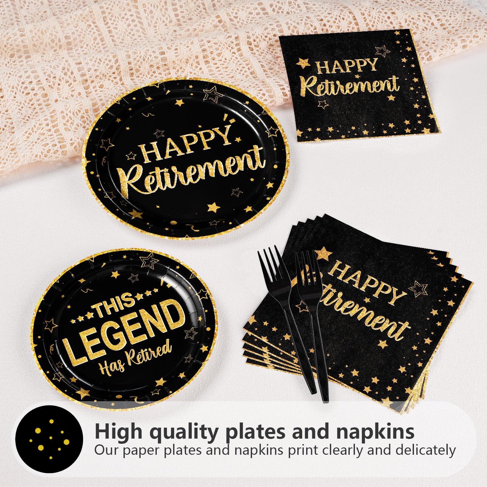 Versatile for Any Retirement Celebration: Whether hosting a formal dinner, casual backyard party, or office farewell, this set adapts seamlessly. The timeless black-and-gold palette complements balloons, banners, and other décor themes. Use the plates for cake displays, appetizers, or main dishes, and let the napkins double as decorative accents beside utensils or wrapped around silverware bundles