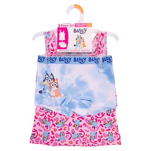 Description Bring the joy of Bluey and her family into your child's daily routine with the Bluey Girl and Toddler Girl Underwear Collection. Designed for both toddlers and big girls, this collection includes a 10-pack of 100% combed cotton panties and a 4-pack of super soft poly blend girl shorts with a cotton gusset. Each piece is tagless, featuring a brushed waistband for maximum comfort and irritation-free wear. Adorned with delightful designs of Bluey, Bingo, Bandit, and Chilli, these underwear sets bring the fun and adventure of the show to life. The 10-pack panties provide breathable, all-day comfort, perfect for potty training and active play, while the 4-pack girl shorts offer a cozy fit and flexibility for on-the-go adventures. Available in sizes 2/3T through 8, these sets ensure a snug, secure fit for growing kids. Both options combine functionality with the charm of Bluey’s world, making them a practical and fun addition to any wardrobe. Durable, affordable, and full of character, this collection is perfect for fans of Bluey looking to add a splash of fun to their everyday essentials.