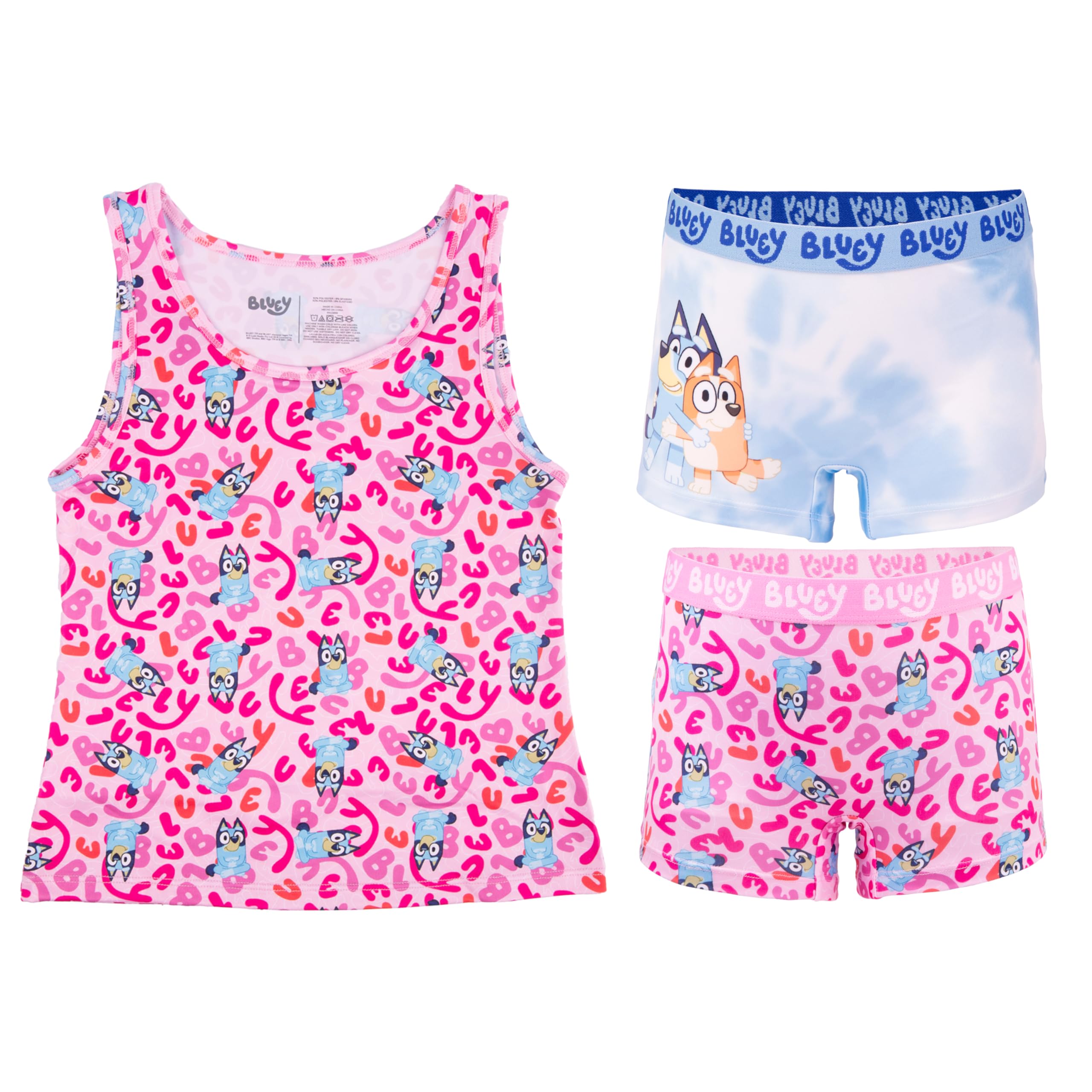 This pack includes four stylish and cozy girl shorts, each featuring vibrant Bluey-themed graphics that inspire adventure and creativity.