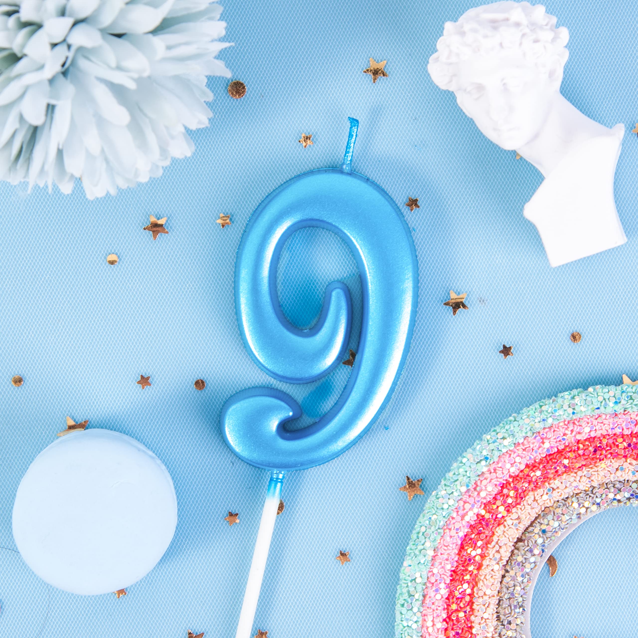 New: 2.76 Inch Large Elegant Blue 9 Number Birthday Candle designed to make your cake and birthday a unique and truly inspiring event.