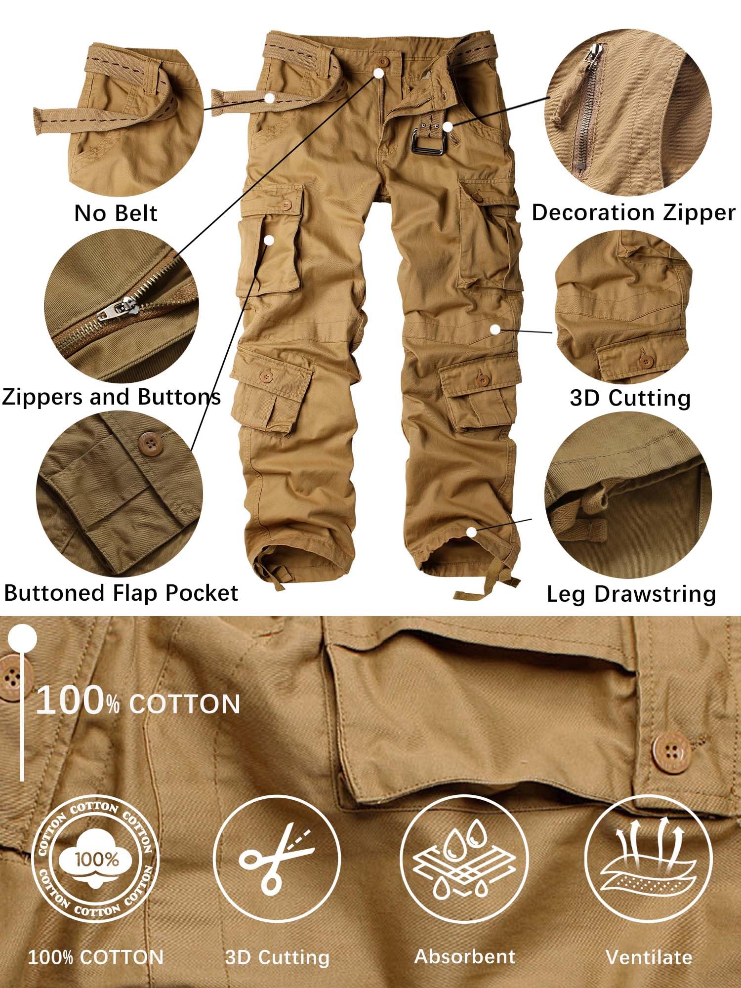 Product Material:This cargo pants for men use 100% cotton fabric, treated for ease of care with a wrinkle-resistant finish and durability,which is soft,breathable and sweat-absorbent,durable and tough,can repel the stains, liquids and soil keep you all day dry and clean.