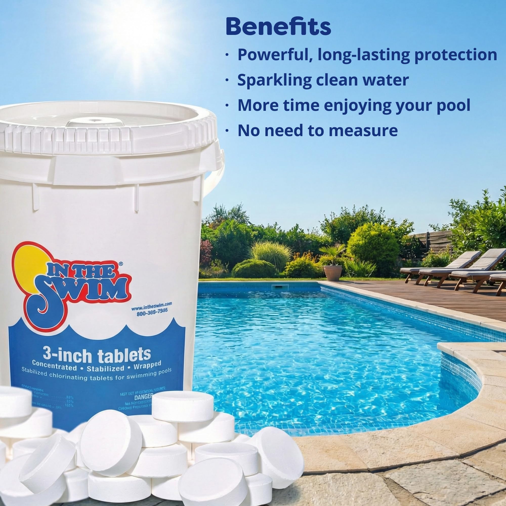 Powerful Chlorination: Includes 3-inch tabs with 99% Trichloro-S-Triazinetrione and 90% stabilized chlorine for long-lasting, UV-protected sanitation.