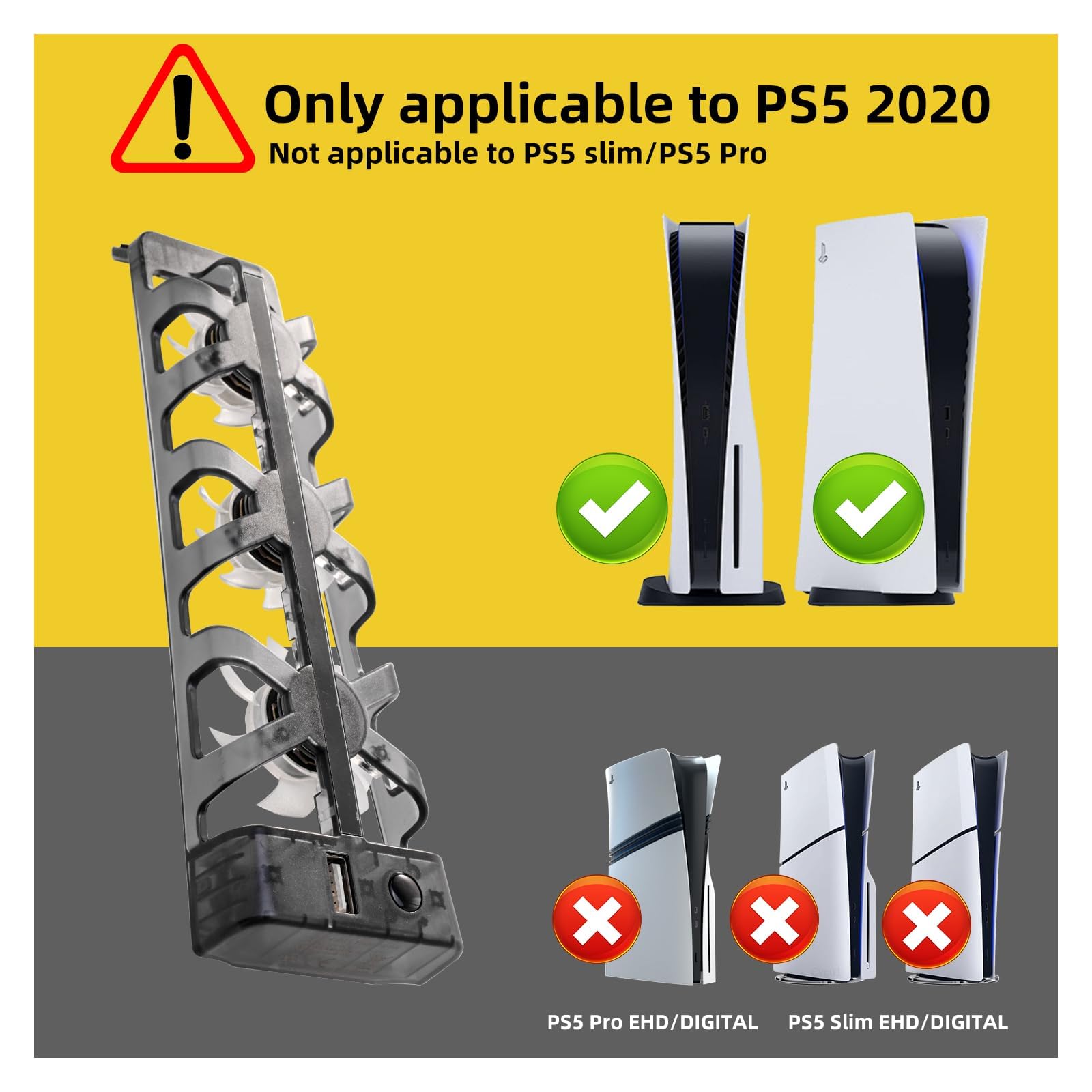 Compact & Space-Saving Design: Designed specifically for the PS5 Digital & Disc Edition, this slim and lightweight cooling station doesn’t interfere with your console's placement. Blends seamlessly into your entertainment setup or desktop
