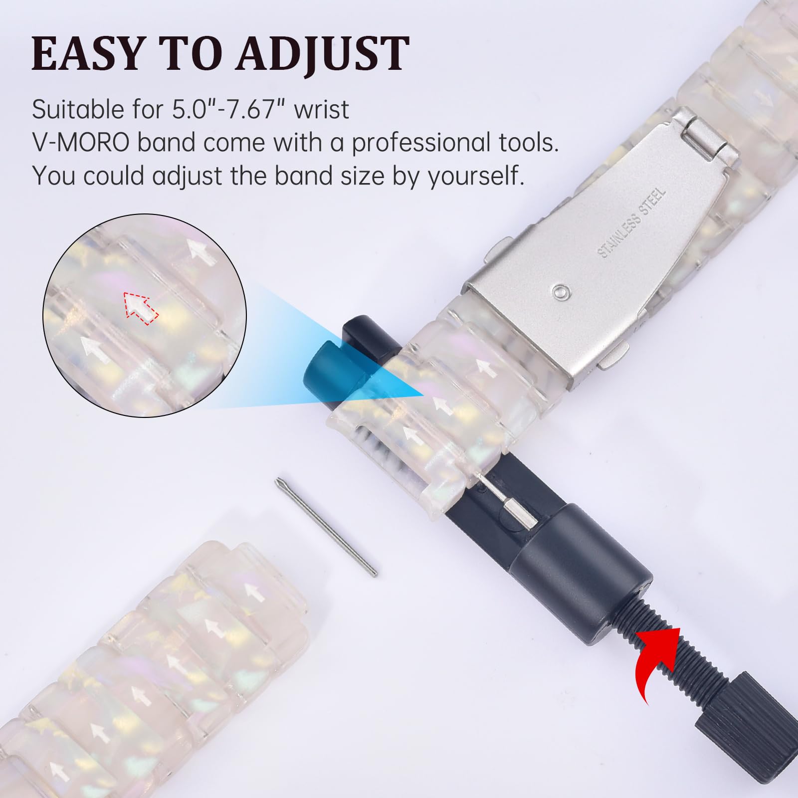 🎅Easy to use and adjust - You only need to press easily the buttons on both sides of the Stainless Steel Buckle to open the strap or release it. The package is contain a links removal tool, an instruction. You could easily remove the extra links to fit your wrist perfectly