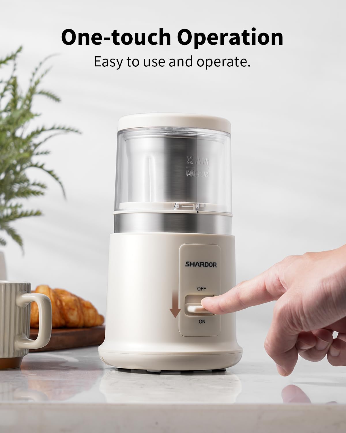 Multi-functional Coffee Grinder: With the upgraded stainless steel blades, this grinder makes easy work of grinding everything from coffee beans to spices and other dry ingredients, such as herbs, pepper, cinnamon, anise, flaxseed, nuts and coarse salt.