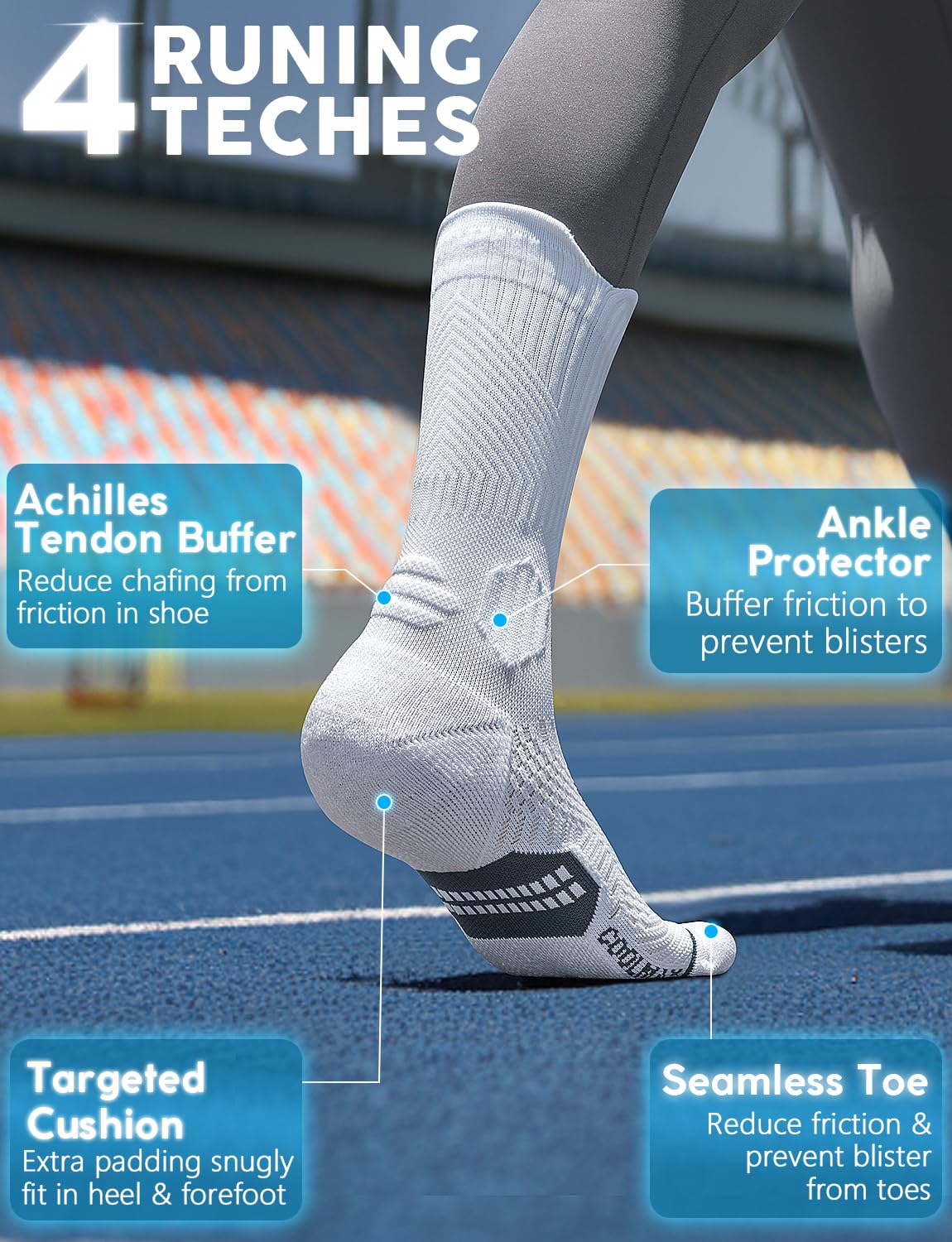 【Blister Defense, All-Day Comfort】 Anti-blister design with seamless toes and reinforced padding protects during rocky hikes or city walks. Pair with yoga pants and cushioned sneakers for runs as smooth as your athleisure aesthetic.