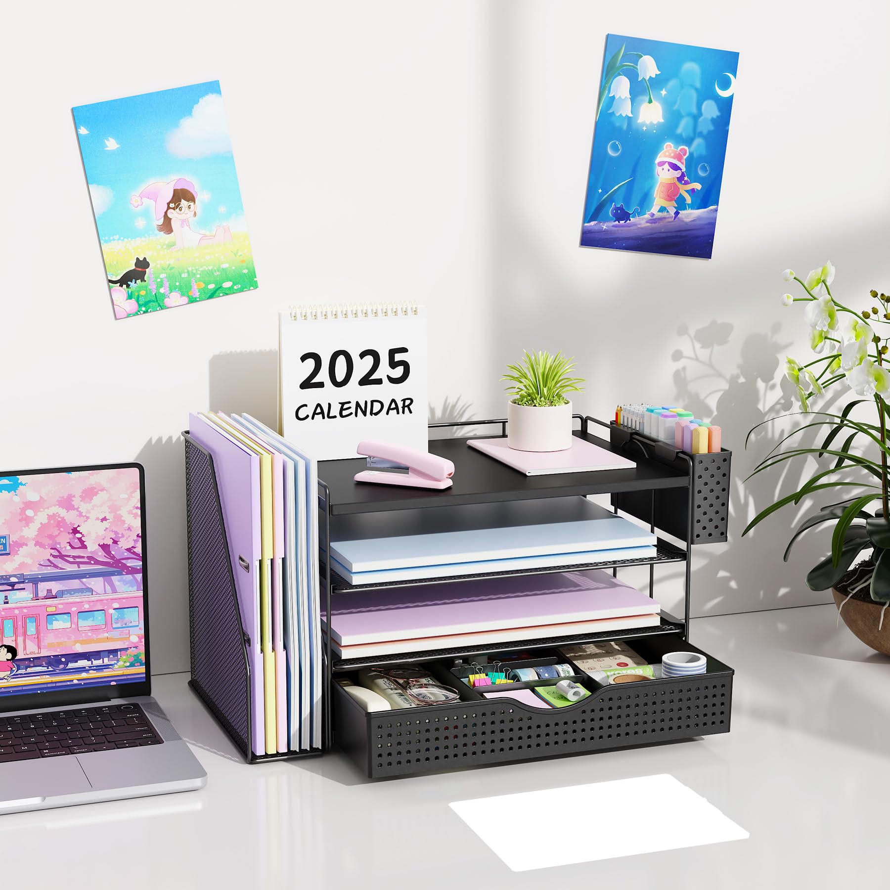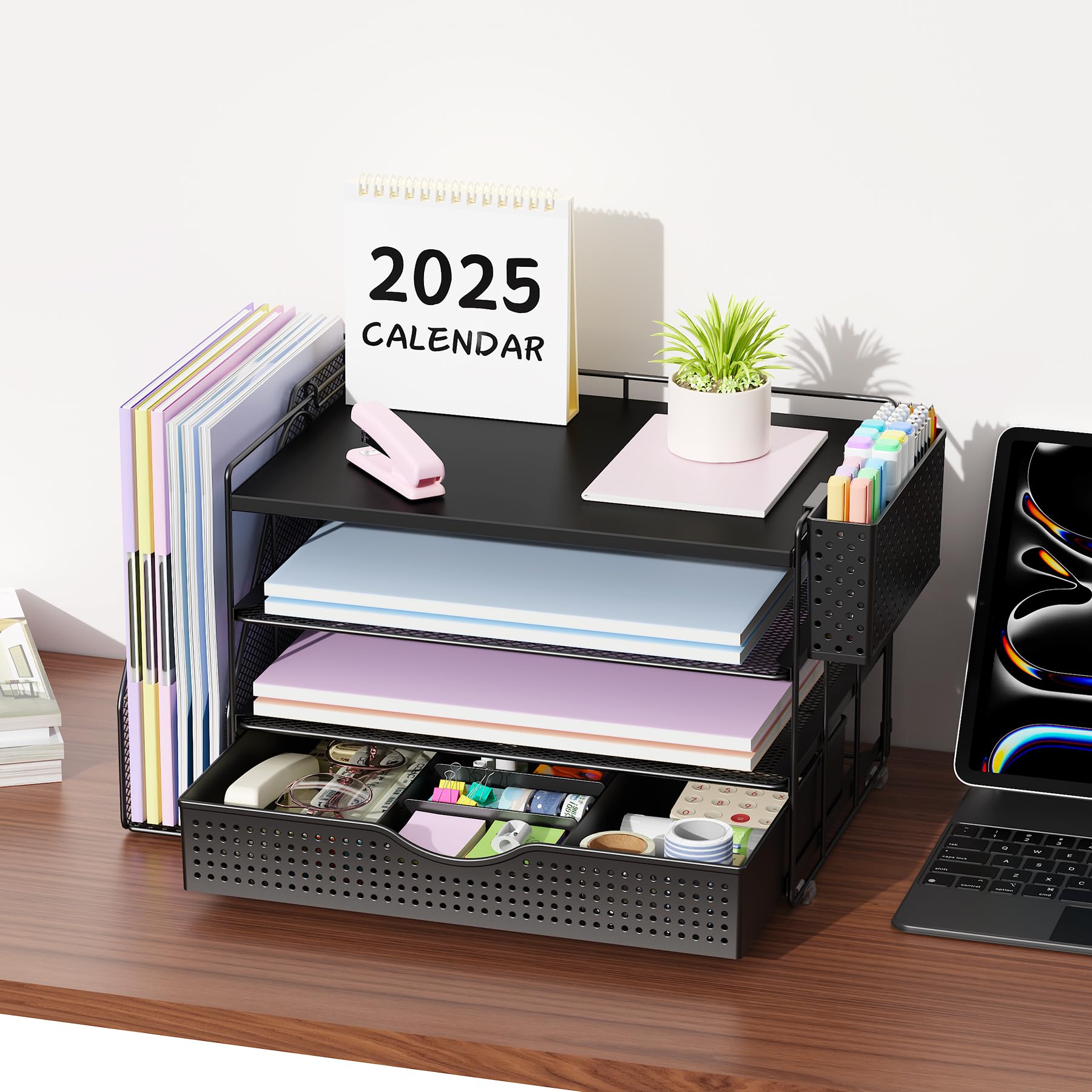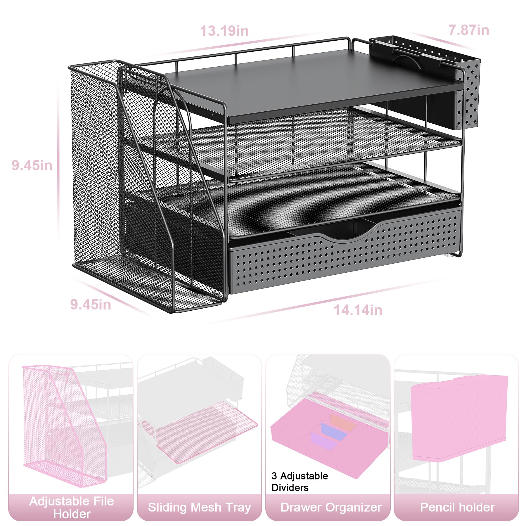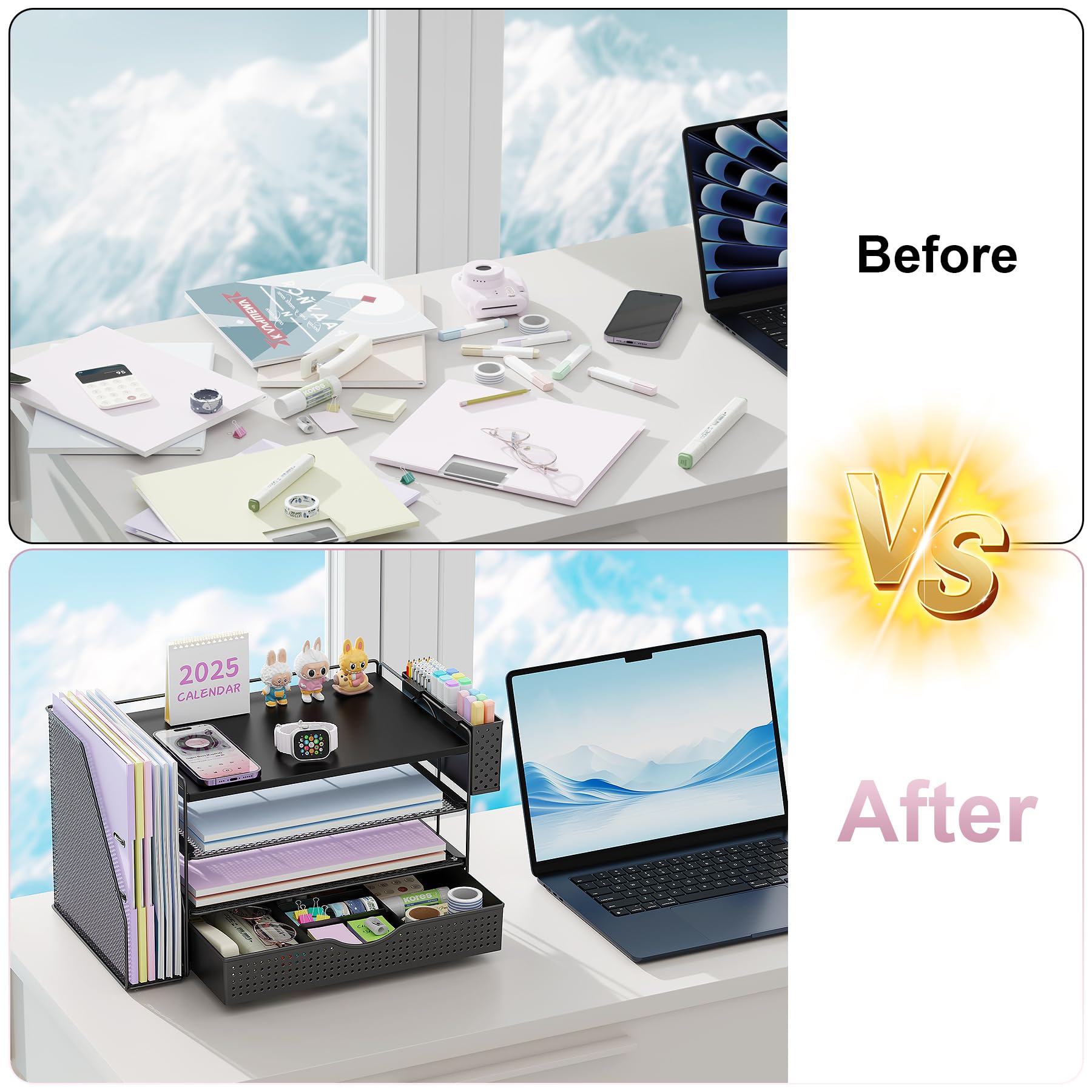 【Improve Work Efficiency】: This pen organizer contains 4 trays, 1 magazine rack, 1 pen holder, and 1 sliding drawer, which can help you quickly identify the contents of each compartment, helping to keep papers, notebooks, and office supplies neatly organized and easily accessible., so that you can stay busy and creative all day long.