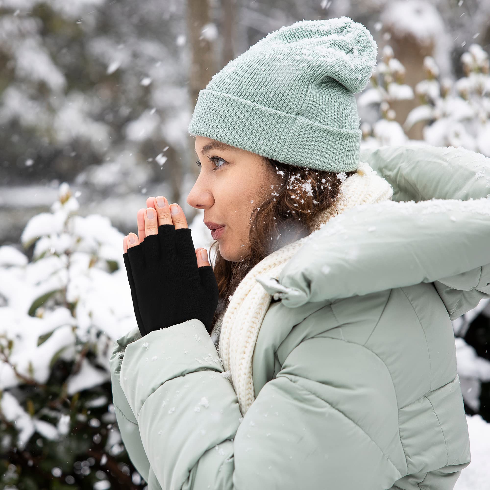 Fingerless gloves: the fingerless design makes fingers move flexibly when you are work, answering calls, exercising and typing easy and efficient, also convenient for your wearing on and off
