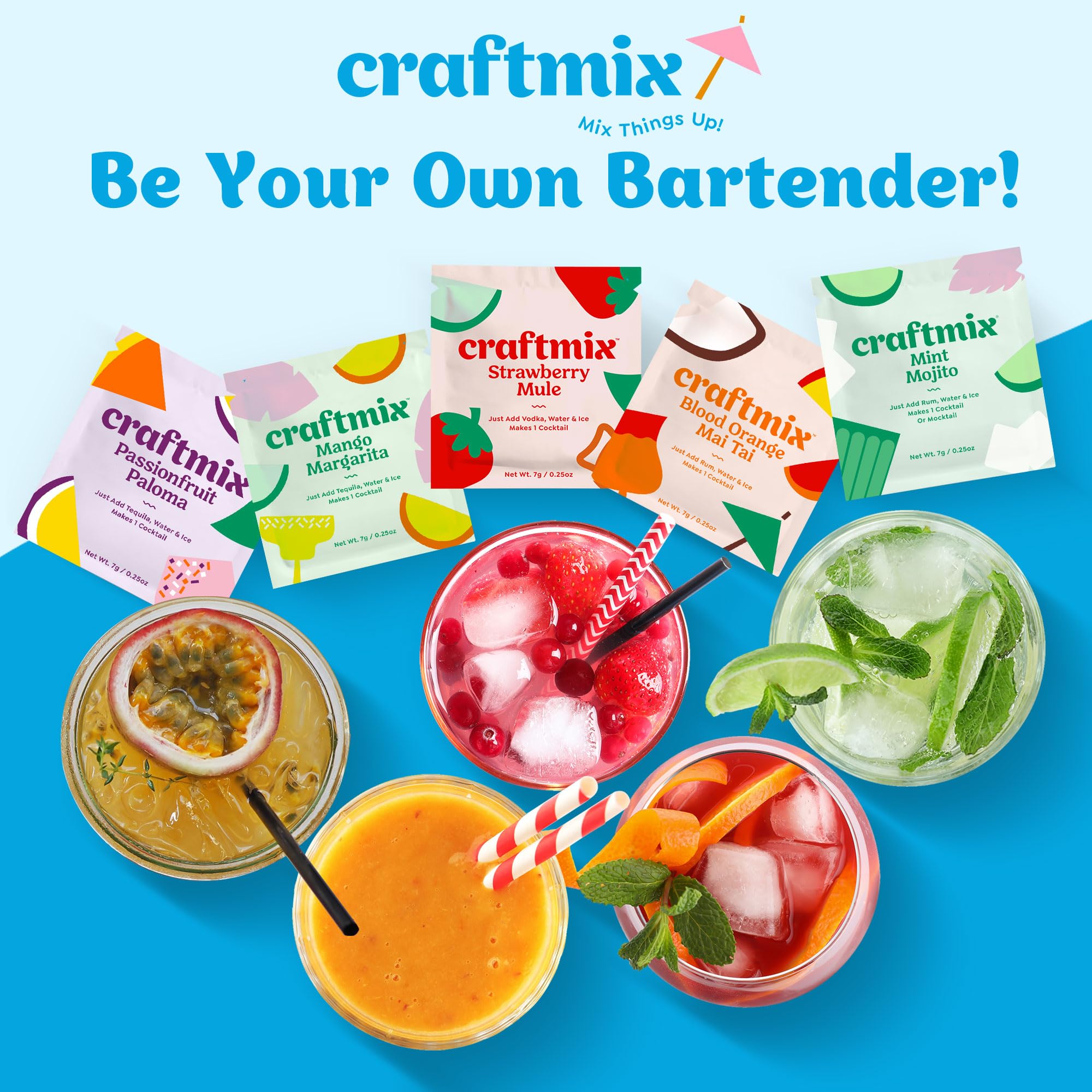 Delicious Cocktails Anywhere You Go - Our cocktail mixers come in pre-measured packets. Have a sip watching a game, camping, or just as a pick-me-up after work. You can also use Craftmix to make mocktails or other non-alcoholic drinks.