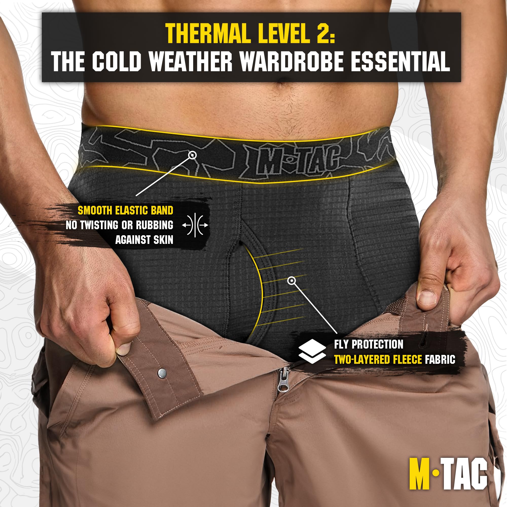 Versatile Second Layer for Cold Weather: M-Tac Delta Layer 2 Thermal Underwear create a warm layer of air next to the skin - ideal for winter; Loose waffle-knit structure of thermal underwear bottoms creates space to gather excess moisture keeping it away from skin