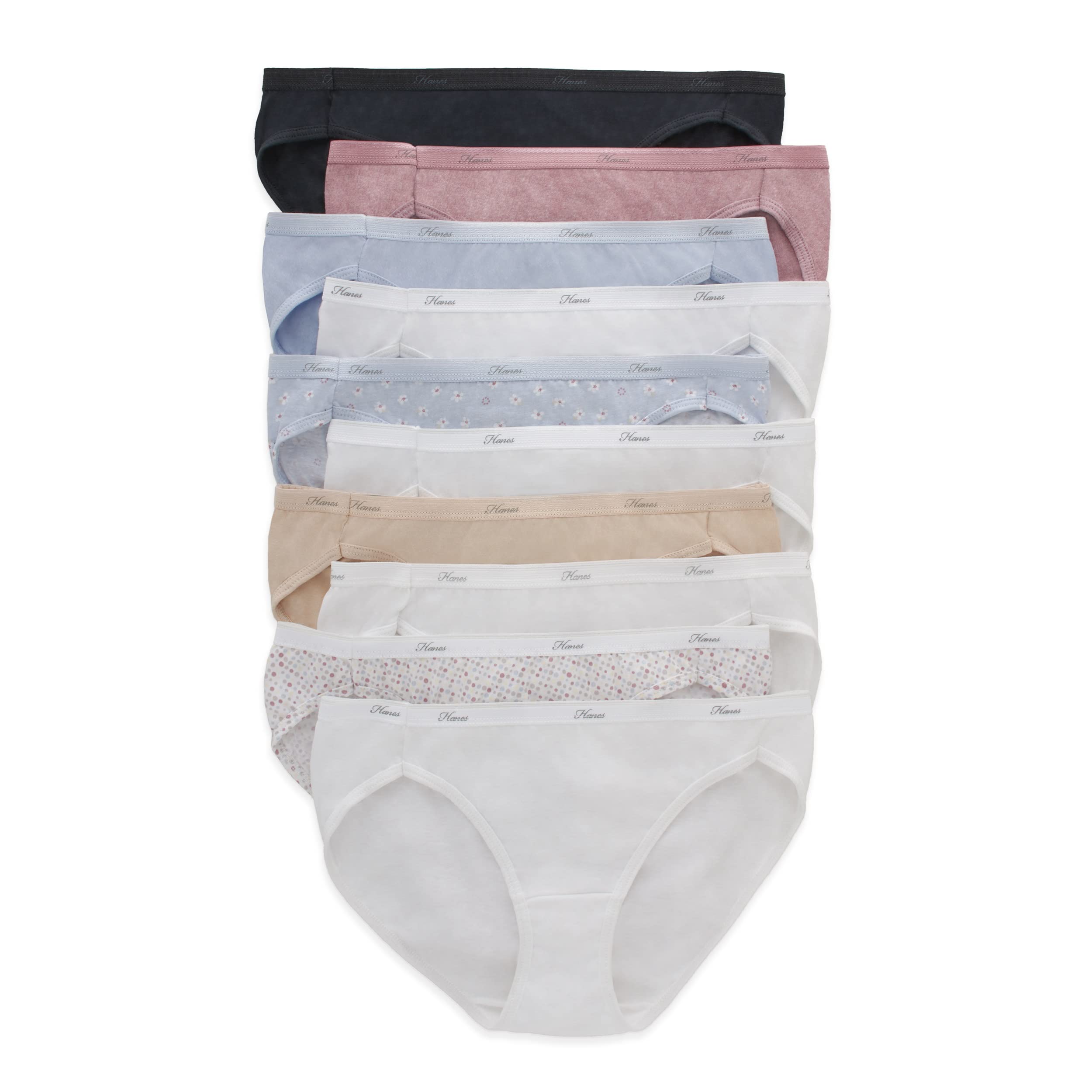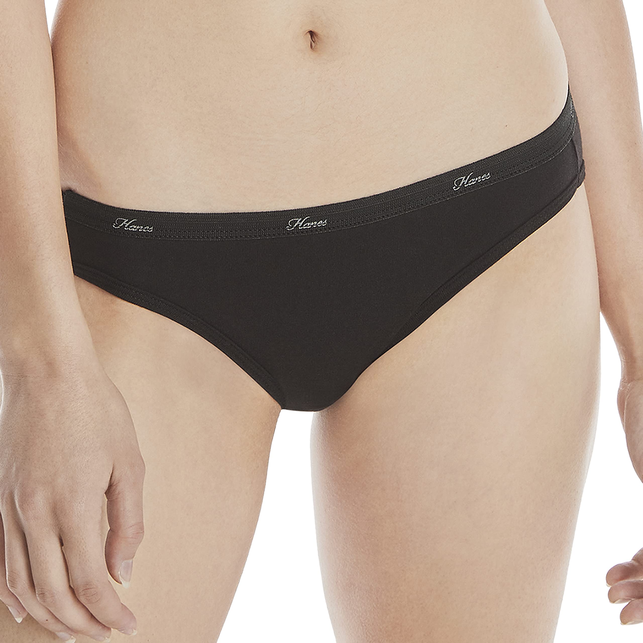 Description Keep your cool all day with Hanes® lightweight bikini panties in a handy stock-up 12-pack. This pure cotton and cotton-blend underwear is made with Hanes® Cool Comfort® fabric that wicks away moisture from your skin to keep you cool and dry all day. Plus the soft, ring-spun cotton is preshrunk which means the size you buy is the size they stay, wash after wash. You'll also appreciate the ultra-plush, anti-ravel waistband that won't pinch or bind. The silhouette is a classic bikini style with a low-rise waist, high-cut legs, and moderate back coverage, just what bikini wearers prefer. These bikini underpants have comfort leg bands that stay in place without riding up and are available in a convenient 12-pack of assorted solid and heather colors.